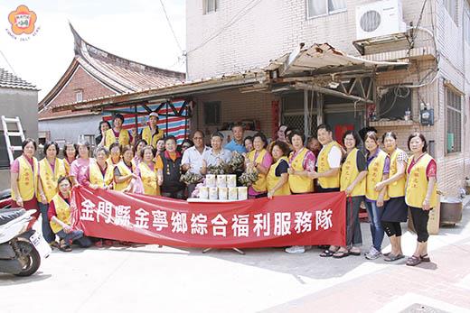 粽葉飄香慶端午,金寧鄉綜合服務志工隊長蔡素芬和志工夥伴共聚一堂包粽子,並攜帶肉粽至弱勢家庭關懷慰問,和幫忙打掃家中環境,讓這些平時無依無靠的老人、低收入戶倍感溫馨。金寧鄉長陳成勇、代表會主席陳成泉與代表均到場加油打氣,感謝志工們平日協助鄉公所的鄉務工作,也推許她們以愛心粽,來讓轄區獨居老人感受到關懷,提前感受端午節慶的氣氛。 金寧鄉綜合服務志工隊一行人於五日一大早聚集古寧村南山某志工住處庭院,一起分工準備了香菇、蝦米、鵪鶉蛋、豬肉等內餡,並事先將粽葉洗淨瀝乾動手包粽子。鄉長陳成勇也由鄉公所社會課長蔡世舜陪同到場向志工團隊致意,並致贈贊助經費,代表會主席陳成泉、副主席李開陣與代表李正騰等均到場加油打氣,感謝她們以親手包的愛心粽,讓弱勢的鄉親也感受到節慶的氣氛。 陳成勇肯定志工隊這一份服務社會的熱忱,他說,志工隊員來自金寧鄉各村落,這些婆婆媽媽平日忙於工作,也要照顧家庭,但是每個人卻有一份服務的心,利用閒暇時間走出家庭來參與鄉公所執行社會服務工作,包括協助照顧獨居老人、關懷中低收入戶,以及參與環境整理和各項鄉公所活動,可說是鄉公所團隊的好幫手。 蔡素芬和志工夥伴帶著剛出爐熱騰騰的肉粽展開關懷獨居老人、低收入戶的慰問活動,志工們逐一登門慰問轄區獨居的阿公和阿婆,表達賀節的心意。 為協助社區獨居老人於端午節能有一個清潔舒適的居住環境,志工夥伴前往探慰獨居老人並協助清理打掃環境,同時致贈獨居老人肉粽過節,讓轄區獨居老人感受到關懷,提前分享到過端午節慶的氣氛。