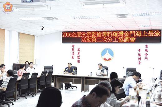 已然邁入第十四屆暨第八屆的金廈兩岸夏季海上運動盛事,2016搶灘料羅灣金門海上長泳暨金廈海域泳渡全球華人接力公開賽,將在今年7月30及31日兩天舉辦;為讓這項年度盛事愈辦愈精彩,金門縣政府昨日召開第二次分工協調會議,副縣長林德恭希望各配合單位做好選手安全維護和海域週遭環境整潔,以全力以赴來辦好活動。 2016金廈泳渡暨搶灘料羅灣金門海上長泳活動第二次分工協調會,昨日上午九時起在縣府大禮堂會議室舉行,由副縣長林德恭主持,教育處長李文良、金門縣立體育場場長許換生、金門大學管理學院院長董燊,以及各組代表出席與會。 會中,行政組、承辦組、水上安全戒護組、旅遊組、場地組、水道組、典禮組、接待組、交管組、會計組、資訊組、環保組、報到檢錄組、服務組、事務組、新聞組、醫護組、競賽組、裁判組、園遊組、晶片計時組、學術組、運輸組、公關行銷組、贊助單位、行銷整合組、維安組,也就工作分工職掌進行協調確認。 林副縣長表示,這兩項活動可以說是地區一項盛事,救生人員能就地取材優先考量最好,不要捨近求遠。對於海域和海灘環境整潔,也希望動員志工協助淨灘,千萬不要有損金門形象。他也以彰化高鐵田中站為例,當地雖是小村莊,但辦活動全體動員,展現鄉下人熱忱、熱情好客,值得金門來學習。 對於檳榔嶼附近的海蚵箱網等障礙物排除,避免造成對選手泳渡的安全疑慮,建設處規劃於6月15日前,擇海象較佳時出海實地勘察。而大陸廈門市體育局也希望參與會勘,對此,副縣長林德恭和海岸巡也提醒能事先通知聯絡廈門方,避免越中線,養殖業者並能配合暫時遷移。 會中,並就選手之夜聯誼餐會舉辦和表演晚會提案,進行討論。金門大學管理學院院長董燊表示,今年選手之夜在中華成人游泳協會有意主辦,地點將擇於昇恆昌金湖大飯店舉行,由於場地最多可容納九百五十人,除四百名貴賓外,其餘有五百五十個名額由選手自費每人新台幣五百元自由報名參加。至於表演晚會則接續在金湖綜合體育館舉行,副縣長林德恭請教育處協調文化局,商請地區有特色表演隊伍參與演出。 這項行之有年的夏季體壇盛事,今年仍委由金門縣運動管理學會辦理,學會指出,搶灘料羅灣│第十四屆金門海上長泳活動係為推展游泳運動、培訓游泳選手、開拓水域活動、擴展健康旅遊、活絡本縣整體經濟而辦理。這項活動迄今已辦過十三屆,今年為第十四屆,活動將於7月30日於料羅灣海域舉行,游泳距離為三千公尺。 至於今年的金廈海域泳渡全球華人接力公開賽活動自2009年開辦至今已辦理七屆,今年為第八屆,金門縣運動管理學會表示,雙年數由金門游向廈門,單年數由廈門游向金門,活動效益著重於推動兩岸各項體育、文化等交流合作,透過辦理其活動結合金廈間的交流,運用兩岸特殊的地理位置,提升國際化價值與金廈兩地知名度。 金門縣運動管理學會表示,第八屆金廈海域泳渡全球華人接力公開賽預訂今年7月31日(農曆6月28日小潮轉長潮),勘定潮汐後(約上午9點36分滿潮),預定當日9時10分鳴槍開賽下水出發,賽程距離約7公里(由金門烈嶼雙口海灘至廈門椰風寨救生指揮中心海灘),預估第一名於10時35分左右抵達終點線。