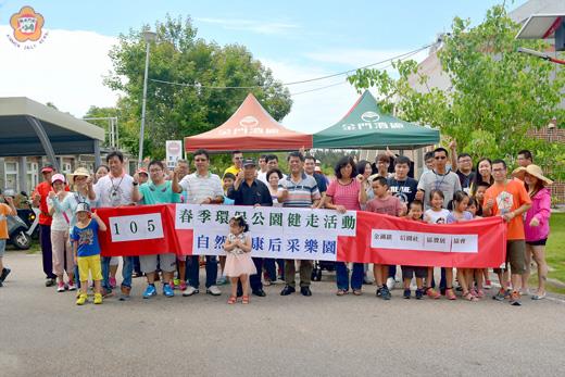 端午節將近,后園社區發展協會5日舉辦「健康自然,后采樂園」健走活動,活動主軸以健康自然為出發,在環保公園環湖步道展開健走活動,總共有近百人參加。 暖身運動後開始健走活動,環保公園內有金門地區的每尊風獅爺的複刻版,協會選定四尊風獅爺,參加的朋友們要走到四位關主把關的風獅爺處,蓋滿四個章後,協會贈送精緻手工餅乾給參加的朋友們,來參加的朋友都表示,這個活動真的非常棒,一來走路為健康努力,再來認識風獅爺,小朋友們都非常開心,如果多辦幾場,相信會有更多朋友想參加的。因為天氣熱,協會也特別提醒大家要防曬及補充水份,並貼心的在健走入口處就為大家蓋滿四個章,如果真的太熱了,就趕快遶回來。但是幾乎所有參加的大小朋友們,都走完全程,體驗難得的健康知性之旅。 本次活動由縣政府社會處、金門縣環保局、金湖鎮公所及金酒公司等單位指導協助,理事長蕭天民表示,協會去年成立以來,承蒙大家的支持鼓勵,才能順利舉辦本次活動,感謝再感謝,感恩再感恩。對於本次活動承蒙縣府等單位的支持,包括議員陳玉珍、新湖里里長陳文顧及金湖鎮代會主席呂瑞泰等貴賓的禮金或禮品的贊助,加上環保局的機動車噪音防治等環保概念宣導,更送給參加朋友的小贈品,讓大家十分高興。