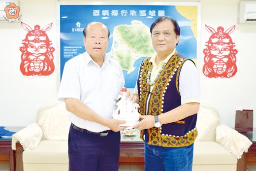 臺東縣金峰鄉鄉長宋賢一率領各村村、鄰長到烈嶼鄉觀摩交流,拜訪烈嶼鄉長洪成發,也參觀東坑社區成功運用的低碳微電網儲電系統。宋賢一稱讚烈嶼鄉環保和綠化做得非常好,殊值金峰鄉學習,希望未來兩鄉多多交流、互訪,增進兩地人民的情感。 烈嶼鄉環保、綠化推動的成果是很多基層鄉鎮公所相繼觀摩的對象,遠在台東縣的金峰鄉也組團到烈嶼鄉「取經」,昨日下午四時許,由鄉長宋賢一率領各村村、鄰長一行人前往鄉公所拜訪鄉長洪成發,受到洪鄉長、鄉公所秘書、民政課長林長固等人的歡迎和接待。 洪成發介紹烈嶼鄉的地理環境、風土民情、觀光旅遊景點、農特產業以及鄉務發展情形。洪成發贈送「烈嶼之友」紀念酒以及高粱酒,歡迎有更多台東的好朋友到烈嶼鄉「作客」,感受島嶼的人文風情。 宋賢一感受到洪成發的好客,倆人相談甚歡。宋賢一也邀請洪成發組團到金峰鄉交流,提供鄉務的成功經驗。 在鄉公所的安排下,宋賢一也參觀東坑模範社區,受到社區幹部的歡迎。宋賢一說,東坑社區連續多年獲得全國標竿社區,在社區治安、環保工作的成果,是金峰鄉各社區學習的標竿。中山科學研究院在烈嶼鄉東坑建置全國第一個再生能源儲電微電網運行的社區,成為全國很多社區觀摩的低碳社區,讓宋賢一等一行人留下深刻的印象。他說,學習別人的經驗,才是取經的目的,這次參訪收穫良多。 金峰鄉位於台灣臺東縣西南方,北臨卑南鄉,東鄰太麻里鄉,西鄰屏東縣霧台鄉、瑪家鄉、泰武鄉、來義鄉,南接達仁鄉,是臺東縣5個山地原住民鄉之一。鄉內居民以台灣原住民排灣族為主,產業上則以農業為主。