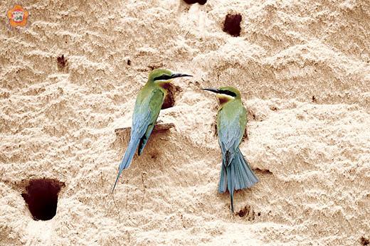 落番的鳥兒又回故鄉了!夏候鳥「栗喉蜂虎」在冬天需隨著東北季風前往東南亞一帶度冬,因此又被稱作是金門鳥類的落番客,而隨著時序逐漸轉熱、南風盛行,這種在金門繁殖的鳥兒又再度回到金門地區了,目前在金門田野已普遍可見栗喉蜂虎的身影,來金的旅客與在地的民眾千萬別錯過賞鳥時機,欣賞這身披五彩的夏日精靈! 受到今年氣候不穩定的影響,今年的栗喉蜂虎較往年晚了一、二個禮拜的時間才抵達金門,目前在金沙田浦、榮湖、金寧慈湖、金城歐厝,甚至於小金門的海岸都可見到蜂虎的蹤影,研判族群數量應該二至三千隻左右的數量。而從現在至月底至九月正是這種夏候鳥最好的賞鳥期。 想要觀察栗喉蜂虎的民眾,可把握出外的機會,在田野間樹枝、電線桿置高點,見到牠們捕獲蜜蜂、蝴蝶或是其他昆蟲,停棲在樹枝上準備大快朵頤的畫面。具有藍、褐、黑、栗、海藍多種羽色的栗喉蜂虎有「夏日精靈」的美名,是金門自然生態重要的鳥類資源,而栗喉蜂虎以迅速敏捷的高超飛行在空中捕食飛蟲,更有著空中昆蟲殺手的美稱。 這種金門的代表性鳥種,每年夏天更吸引大批的台灣鳥友競相到訪金門欣賞牠們繽紛的彩羽和敏捷的獵食身手,可說是金門夏季觀光旅遊的最佳代言鳥!但栗喉蜂虎生性頗為敏感,金門野生動物救援暨保育協會建議野外賞鳥最好躲在車內等掩蔽處,以免過度干擾蜂虎的生態,讓這種美麗的鳥兒能世世代代再返金門故鄉。 栗喉蜂虎小檔案:(資料來源:台灣野鳥圖鑑) 中文名:栗喉蜂虎英文名:Blue-cheeked Bee Eater 學名:Meropssuperciliosus 體型:約二十至三十公分長,羽色包含了藍綠、藍、紅褐、黑黃等色,體態鮮艷動人。 生活習性:活動於平地的農田、村落附近,以昆蟲為主食,常棲食於突出的樹梢,定因捕食飛行中的昆蟲,在土崖或土牆挖深隧狀巢繁殖。