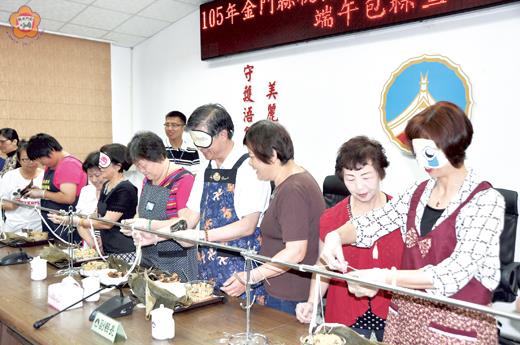 金門縣副縣長林德恭、夫人章美龍、金門縣議會議長洪麗萍,昨日一起參加縣府社會處舉辦的「視覺障礙者自立生活體驗~端午包粽宣導活動」,藉由戴上眼罩與視障者同台包粽子,實際體驗運用「手感」及「聽覺」方式包粽子,就是要切身體會視障者生活起居的不便之處,培養同理心。 副縣長林德恭表示,金門弱勢族群將近六千人,縣府對於無障礙空間朝理想化,也將和縣議會共同努力、持續推動。而在縣府推動金門縣視覺障礙者生活重建服務方案已有五年,是感謝各界幫助與扶持。這次社會處首次舉辦端午包粽子體驗活動,也深具意義。 林副縣長強調,將心比心、同理心和感同身受,對弱勢者的關愛關心,就是這個社會因有愛而偉大。他指出,陳縣長在年節祝願即期待金門未來走向禮運大同篇,並希望大家多關心弱勢族群,給他們機會和協助,以走出康莊大道,朝友善城市社會目標邁進。 端午節將來臨,金門縣政府社會處昨日上午十時起在縣府大禮堂舉辦視覺障礙者自立生活體驗活動,邀請副縣長林德恭、縣議會議長洪麗萍矇著眼睛,和視障朋友一起體驗包肉粽。 林副縣長不但是第一次包粽子,更是首次體驗矇眼包肉粽,是拿下最佳造型獎。林副縣長的夫人章美龍則是金門縣康復之友協會理事長,她也是第一次包粽子,得到最佳創意獎。不過,看到夫婿包的粽子,章美龍不以為然地笑說:「不好看,不及格」。 縣議會議長洪麗萍雖是第一次包肉粽,但手法精準,米粒和肉蛋等餡都沒有掉落,包的也很有型,拿下最佳精湛獎。她說,雖然是第一次包肉粽,但看過別人包,所以包的還可以。她勉勵大家要珍惜當下,共同為視障朋友盡一分心力。 多數與會的視障者也都展開包肉粽處女秀。20多歲的蔡逸嫺因為糖尿病造成視障,高職畢業後從事回收工作,後因全盲賦閒在家。她最近開始接受定向老師陳淑惠的教導,學習生活自理。陳淑惠說,蔡逸嫻現在在家會幫媽媽洗菜、切菜,等媽媽回來後下鍋,就可以吃飯了。蔡逸嫻10分鐘就包了4顆,得到最佳速度獎。 而罹患先天白內障的蔡(石羡)輝,手術失敗後,只剩一眼可以勉強有視力。昨日她在生活技能訓練師黃秀美的口頭提示下,開心包粽。蔡(石羡)輝說,剛開始很緊張,第3顆就順手了,她昨天是勇奪最佳技術獎。 金湖國中3年級的謝嘉玲昨天也參加了活動,她是在國一寒假時因頭暈、視線模糊而求醫,證實罹患罕見疾病高安氏症。現在的她左眼受損、右眼只有微弱視力。她說,申請擴視機和大字課本後,幫助學習。陪伴謝嘉玲的特教助理員連意玉說,謝嘉玲十分樂觀,雖然視障,但讀書認真、不洩氣,是個很乖的孩子。 縣府社會處長甯國平表示,辦理矇眼包粽主要在讓民眾體會視障者生活的不便,感同身受,盡可能在視障朋友需要時助一臂之力。 縣府社會處指出,近年來,該處積極推動視覺障礙者生活重建服務,特別聘請從台灣來的視障定向訓練師、專業督導員,針對本縣視障者進行定向訓練及生活重建,加強視障者其它感官(聽、觸)、並使用輔具,以恢復原有自我的功能,讓視障者可獨立生活、就業、就學等,並融入社會及增進人際互動,而不再仰賴他人的照顧,邁向自立自主有尊嚴的生活。 社會處表示,視障者欲接受視覺障礙生活重建方案服務,可於上班時間(星期一至星期五)備齊相關文件(身心障礙手冊或證明影本)逕向金門縣政府社會處社會福利科史小姐辦理報名事宜,電話:318823轉67536。