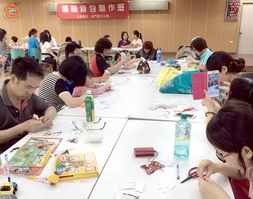 五月五慶端午,文化局共舉辦四場次「端陽香包DIY」活動,首場假金沙鎮及烈嶼鄉辦理,兩場皆吸引滿額人數報名,親子及民眾到場動手DIY,完成可愛又實用的「貓頭鷹吊飾香包」。下場次將於六月五日假文化局辦理,敬請已報名的民眾準時到場參與。 文化局配合一年一度端午佳節,訂於五月二十九日、六月五日假金沙鎮、烈嶼鄉、金城鎮辦理四場次「端陽香包DIY」活動,已持續舉辦多年,活動也深受民眾歡迎,開放報名當日反應相當踴躍,場場滿額。而首場活動假金沙鎮公所舉辦,吸引親子及報名的民眾前往DIY,提前感受端午佳節的氣息。 此次活動作品為「貓頭鷹吊飾香包」,參加民眾以十五歲以上,未滿者由家長陪同參與,民眾運用剪刀、原子筆等,在志工的帶領下,享受手作的樂趣,完成獨一無二且實用的香包吊飾,好不快樂。而在結束上午場次活動後,下午則移師烈嶼鄉辦理,同樣受到民眾歡迎,齊聚烈嶼鄉樂齡活動中心,快樂DIY。 文化局表示,活動共計四場次,下兩場為六月五日上午及下午,假文化局三樓會議室辦理,敬請已報名的民眾準時到場,並自備可以剪布料的剪刀和原子筆,若未滿十五歲請家長陪同參與。