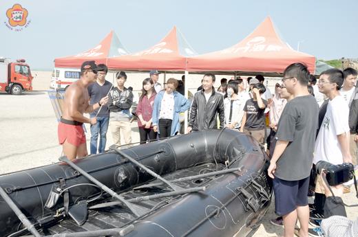 圖文/董森堡 金門大學海洋與邊境管理學系向來就以海洋法律、邊境管理等事務為學習重心,把握昨日金門岸巡總隊舉行海上救生救難演練的難得機會,該系同學特別出席參與活動,實地觀摩各項海上救生操演。同學們對於兩棲偵察營實行海上潛水救生、小艇搶灘的訓練特別有興趣,聆聽現場教官的操艇解說,瞭解這中華民國最強軍種之一的訓練概況,領略金門海龍蛙兵的威武軍風。