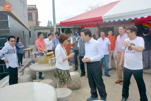 議會第六屆第三次定期會昨日進行最後一天總質詢,第三質詢小組議長洪麗萍與議員也邀請縣長陳福海與縣府官員到湖下考察地方建設,希望府會一起努力,讓地方發展越來越好。 昨日下午二時三十分起為議會定期會第三質詢小組總質詢時間,議長洪麗萍與質詢小組議員楊永立、洪鴻斌、周子傑等與縣長陳福海及議會秘書長洪允典、主管以及縣府秘書長黃景舜與相關處局主管前往湖下考察地方建設。 昨日縣長陳福海、議長洪麗萍也帶領縣府、議會主管前往湖下雙忠廟上香、獻爐敬金,祈祝地方風調雨順、安居樂業。 昨日議員楊永立也反映湖下海堤到慈湖二、三百公尺的木棧道有棧板老舊、破損、龜裂的現象,行經的路人易生危險等情況,金寧鄉公所一年平均要修復三次,每次經費要二十萬元,希望能採取比較一勞永逸的解決辦法。關心地方建設的陳縣長也立即在湖埔村長楊振嵩、縣府建設處長許志忠等人的陪同下前往現場會勘。 對於議員反映木棧板破損狀況,陳縣長當場要許志忠處長派人針對迫切安全的問題補強,同時進行整體評估勘查,研商最長遠有效的解決方式。 關於湖下海堤部分燈光晚上不亮,陳縣長也指示同行的縣府官員立即協調負責單位著手處理,同時要求加強海灘垃圾的處理與環境維護。 陳縣長也稱讚木棧道附近海灘景色幽美,而附近廢棄營區林地,希望建設處進一步研究,可以填平朝農村聚落的概念來規劃。 端午節將到來,昨日湖峰社區也在廟埕前包肉粽歡迎到訪的來賓,包括北京中央電視台等電視台也到場拍攝美食節目,縣長陳福海也接受中央電視台的訪問,大力推銷金門的高粱酒與地方美食,歡迎大家來金門旅遊。 縣長陳福海、議長洪麗萍也和地方耆老就地方建設交換意見,希望結合府會的努力,讓地方發展越來越好。