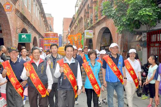 許加泰/圖文 「迎城隍」慶典壓軸遶境巡安,縣長陳福海、議長洪麗萍、立委楊鎮浯、省府秘書長李智雄、金城鎮長石兆瑉、金寧鄉長陳成勇、城隍廟主委楊耀芸和眾多善信一同護著浯島邑主城隍爺巡安,陳縣長盼各地好朋友共同發揮「揚善棄惡」的城隍精神,一起感恩、惜福。 遶境巡安於昨日下午1時展開,縣長陳福海等地方首長和參與巡安遊行的50多支隊伍,從城隍廟出發,步行金城城區,陳縣長等首長頻頻向夾道觀看的鄉親、遊客揮手致意,歡迎大家逗陣來參與金門最大的民俗宗教慶典活動。
