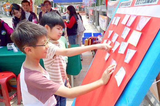 圖文/許峻魁 金門迎城隍,一年一度盛大的民俗慶典熱鬧滾滾,金門縣環境保護局結合宗教盛典,融入環保宣導,於昨日下午配合城隍繞境路線,於國民黨金門縣黨部前舉辦「金門迎城隍‧回收佑平安」資源循環宣導活動,吸引民眾寫下環境保護宣言。 環保局說,昨日活動是地區年度盛事,幾乎每年的這天全民都聚集到後浦小鎮,昨日活動進行環境衛生、垃圾不落地、資源分類回收宣導外,亦進行「資源回收物資換好禮」活動,因此也吸引民眾在昨日將家中使用完畢之資源物資帶至現場,依資源回收物之數量以及項目,兌換一份精美的宣導品(天然藻皂一塊)。 昨日活動,小朋友寫下環保宣言,期許環境更美麗、並承諾做好垃圾分類、不隨意丟棄垃圾等等的諾言。
