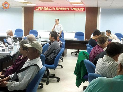 瞭解地區榮民的心聲,提供榮民朋友更為優質的退撫服務,金門榮民服務處於日前舉辦一場「一○五年度金西服務網(金城、金寧)榮民座談會」,邀請西半島金城鎮以及金寧鄉地區之榮民朋友與會,來與相關單位首長面對面,了解榮民們的實際需求。 由金門榮服處舉辦的「一○五年度金西服務網(金城、金寧)榮民座談會」,於日前上午十時起,假金城鎮公所三樓會議室舉行,座談會由榮民服務處處長李鐵和親自主持,邀請地區榮民約六十人左右參與座談,而立法委員楊鎮浯服務處主任孫國智以及地區相關單位派員出席與會,為榮民朋友解惑。 會中,榮服處也特邀請金門縣衛生局副局長李金治擔任講師進行衛教宣導,藉此提醒與會人員重視自身之健康,榮服處表示,期望透過年度的座談,與榮民親自面對面,以近距離的溝通方式,聽取榮民眷的需求,以提昇服務照顧品質。 榮服處長李鐵和致詞時表示,榮服處熱於為榮民朋友服務,提供就養服務,但依舊仍然希望見到榮民朋友能夠平平安安,有子女孫兒承歡膝下;此外,榮服處雖然經費有限,但對於挹注到榮民就養、就學方面仍然相當盡力,同時還結合縣府、福建省政府、社福團體華山基金會等等單位。 對於新政府上任,有聲音傳出應該整併退輔機關,現場的榮民朋友也相當關心,對於是否裁撤也希望榮服處說清楚,李鐵和說,透過整合許多資源的方式,各地榮服處一定會讓立委們看到,榮服處以及退輔會有其存在之價值,讓其重新思索存續的必要。 會中,對於榮民所提問題及建議事項,榮服處均一一予以解答與說明。而今年也特別邀請甫獲國防部核定曾參與六一九砲戰金馬自衛隊隊員,向其說明納入輔導會的服務照顧對象後相關權益,同時也讓他們對於榮民服務處的平時工作有些許認識。 這場榮民代表服務網座談活動,首先由金門縣衛生局李金治副局長分享的醫療保健宣導,提醒與會長者注意飲食及正當休閒運動對於身體健康之影響;另榮服處進行年度服務工作概況介紹,讓大家有更進一步的認識,榮服處強調該處服務對象就是榮民眷,也期許榮民朋友將榮服處視為觸角或平台,有需要榮服處的地方,請隨時與責任區輔導員及社區志願服務組長聯繫,亦可打電話到榮服處,該處將秉持「榮民在那裡,服務到那裡」,專人服務,全年無休,歡迎榮民眷們有困難就不要客氣,避免自己的權益受到損失。