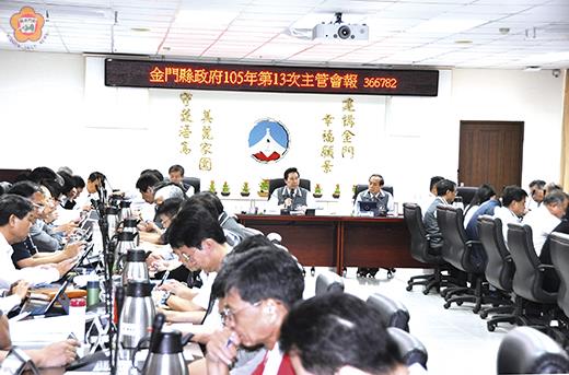 金門縣政府105年第13次主管會報昨召開,縣長陳福海強調,各單位施政要有想法和創意,就能創造正面的價值。他請工務處和養工所針對全縣路平專案列出優先順序,以在兩年內展現金門最好、路最平的一面。 陳縣長也肯定林務所、養工所及整個縣府團隊動起來,希望105年預算執行要落實,106年預算也能儘速編列規劃。而在議會定期大會即將開議,也請各單位將想做的跟議員多互動溝通。對於議員關心水溝和海漂垃圾等議題,也認為都是正面對家鄉是好事。 主管會報昨日上午九時起,在縣政府第一會議室召開,由縣長陳福海主持,副縣長林德恭、秘書長黃景舜、參議、各局處主管及所屬機關主官等與會。 會中,針對上次會議決議事項(十七項)執行情形,聽取各單位報告和說明,縣長陳福海也做了提示和提醒。 陳縣長指出,金湖綜合體育館週邊環境打造和發展優先順序等,應能和農工職校對接。而像小三通新建旅運中心剛完成委託規劃設計及監造案競圖,是挑戰的開始。這些重大工程案子推動,也宣示能朝公開、透明大膽去做。工務處並能在一個月內委託製作3D動畫,來讓鄉親了解小三通今昔的不同演進。至於蘭湖週邊環境整治規劃案,社會處速度太慢,建設處及林務所能去走一走、看一看,期能打造出觀光休憩新亮點。 縣長陳福海也指示消防局和衛生局,能針對面對大規模災害所引發的大量傷患救護處置能力,舉辦一次演練,以和台灣和對岸醫療對接。對於金酒公司在國際大賽獲獎,也期許金酒公司朝質量提升,對於員工薪資待遇結構調整,擇日也將親自和一千五百位員工座談,面對它來努力。 陳縣長也以縣府團隊每一份子,都要有人在公門好修行理念,來用心守護這塊島,千萬不要單一局處做單一思考。而運動園區規劃應將高度拉高,並分近中遠程朝友善運動、打造觀光遊憩環境努力。對於石蚵小麥文化季今年辦得不錯,也請建設處和金寧鄉公所進一步對接討論,以能行銷產業和帶動觀光經濟效益。 有關土地徵收作業,縣長陳福海強調相關部門能積極和業主溝通再溝通、協調再協調,以在公開合法透明,不本位主義前提下,站在人民百姓思考。而對於古蹟、歷史建築活化利用是好事,陳縣長是期文化局建立古蹟(歷史建築)與產業媒合機制,以讓歷史建築能具體活化。 縣長陳福海也以兩岸交流應是良性互動,是期大陸事務辦公室小組能就碰到新情勢發生,確實掌握訊息動起來,讓自己能清楚了解,以能有所策略和因應。陳縣長也認為,吸引台灣觀光客來金觀光旅遊,一定要有誘因和新體驗的規劃。而大陸區塊的陸客來金觀光旅遊,自己有信心打造出讓觀光客還想再來金門島的環境改造,並期產業也能因應。 有關低碳島計畫推動,陳縣長也要求局處協助配合來落實。對於金酒公司以坑道為儲酒酒窖具有特殊性,也希望金酒公司透過故事包裝,來行銷金酒。 副縣長林德恭也就水頭港大型旅客服務中心新建工程委託規劃設計及監造案競圖過程及結果作說明,強調評選委員都有事先公告,就是縣府以公開公平公正來面對評選作業。至於有關空勤總隊直昇機進駐金門案,也請消防局、衛生局充份準備資料,以積極爭取進駐來保障離島醫療、救災、救護需求。