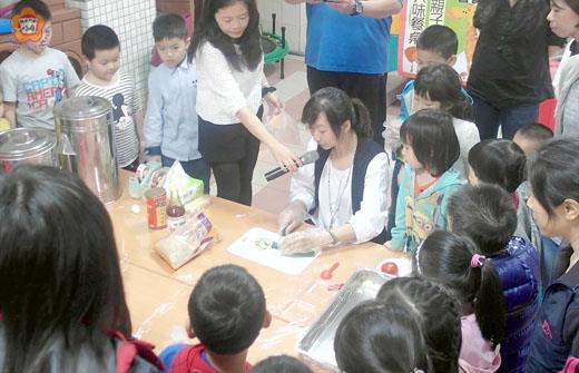 金城幼兒園日昨舉辦「親子美味餐桌」親職教育活動,邀請金門縣政府教育處營養師李選治擔任講師(如上圖),她向與會親子介紹食安議題,也說明食材選擇的重要,也帶家長了解健康飲食製作技巧、食材選擇正確觀念等,並示範陽光三明治及小朋友泡茶等,讓親子也能輕鬆在家自製健康美味餐食。 金城幼兒園日昨辦理親職教育活動--親子的美味餐桌,共吸引四十對親子,計八十位社區親子報名參加,金門縣政府教育處營養師李選治擔任講師,帶家長認識食安議題、食材的選擇的重要,增進家長健康的飲食製作技巧、食材選擇的正確觀念,也告訴父母如何為兒童飲食把關,讓孩子的身體更健康。 李選治也引用統計數據分析,國內學童常見不良飲食行為,有六成兒童有不同程度以上偏食,熱量攝取過多(國小學童每四人就有一人過胖)或食慾不振。而當偏食攝取食物的種類越少,飲食越不容易均衡,而要解決孩子偏食的方法,不妨給孩子一個清淨的空間,如家中勿擺放零食飲料,讓孩子便取得新鮮水果,健康飲品,並且營造家裡溫馨用餐環境,讓孩子避開誘惑的環境,午餐以季節性當地食材為主,熟調方式避免油膩、減少甜湯,更別用垃圾食物獎勵孩子。 李選治也指出,兒童的學習及行為問題與平常的飲食習慣息息相關,又兒童時期是培養健康飲食行為的重要階段,若能在關鍵時期對孩子進行有效的營養教育、培養良好的飲食習慣,對孩子一生的健康有很大的幫助,可見健康飲食的重要性。 活動最後,營養師李選治也帶親子動手製作陽光三明治及小朋友泡茶,讓親子一起參與,體會養成健康飲食觀念的重要。