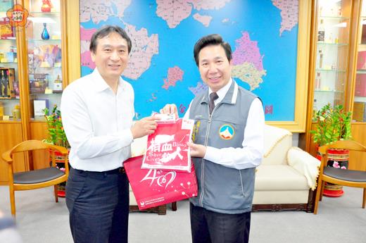 「做一個快樂的捐血人!」金門縣長陳福海昨日接見台北捐血中心人員時,陳縣長表達捐血中心能恢復在金門設站,希望最快年底就能達成設站目標;但捐血中心考量金門人口,以及捐血量的限制,表示現階段還是以巡迴方式服務金門鄉親,以及推廣「捐血一袋,救人一命」的善舉活動。 台北捐血中心組長洪英聖等人,是於昨日下午拜會陳縣長,並說明六月廿一日至廿三日三天,預定來金辦理捐血活動。陳福海表示,他是「快樂捐血人」,允諾到時一定要率先捐血,並帶領局處首長一起挽起袖子,共襄盛舉。 民國八十三年至九十五年間,台北捐血中心曾在金門常設捐血站,以固定的捐血車接受軍民捐血,捐血中心起初效果尚佳,後來駐軍人數一再減少,每天幾乎只有個位數字捐血人;因此,捐血中心十年前撤離金門,不過改以每二年一次派員來金辦理捐血。 在接見中,陳縣長希望的是捐血中心能恢復在金門設站,並指示衛生局向民眾宣導捐血的好處。同時,陳縣長也表示將拜訪台灣血液基金會董事長葉金川,爭取金門設捐血站的機會,並強調金門一定要有捐血站,散發善的和愛的力量。 捐血中心表示,將於六月下旬分別在金城鎮、金門大學、金沙鎮與金湖鎮辦理捐血活動;接下來,預定九月底十月初,將運送一輛捐血車到金門,再辦理一次捐血活動;而且,將視兩次活動反應再決定是否要回復以往狀況,在金門常設捐血站。 洪英聖認為,機動式的巡迴受理捐血,鄉親不必舟車勞頓,就可達到服務鄉親的目的;但陳縣長認為巡迴式的捐血活動無法滿足金門的健康醫療需求,很多鄉親期盼能有固定的捐血車,他希望早日恢復捐血車,讓大家做個「快樂的捐血人」。 捐血中心也表示,打造一輛捐血車費用約為新台幣六百萬元,陳縣長表示醫療基金即可因應,並計劃命名為「金門幸福號」。同時,捐血中心也說若是六月和九月的兩次捐血活動反應熱烈,也不排除金門能有長駐的「金門幸福號」捐血車的可能。