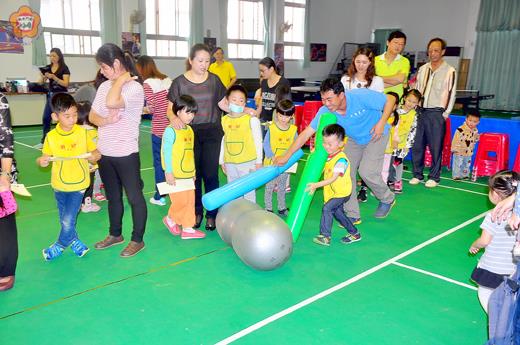 母親節將至,金湖國小附設幼兒園昨(5)日在金湖體育館舉辦「溫馨有愛親子運動會」,邀請家長一同參加,場面十分熱鬧,教育處長李文良也到場致意。本場親子運動會上半場是「讓你媽媽扭一下親子律動」時間,由老師在台上帶動唱,台下家長和小朋友們一起跳「妖怪體操」和「愛你媽媽咪」等曲目;下半場則是「親親媽咪,飛象過河」,由小朋友和爸爸媽媽牽手從起點跑到終點後,小朋友塗上口紅,親吻媽咪的臉頰,之後再一同合照。 特別的是,各班老師和小朋友利用瓦楞紙自製一個愛心班牌,而割下來的愛心缺口剛好變成一個「愛心相框」,讓爸爸媽媽和小朋友一同在相框裡合照,一物兩用,頗有創意。另外,現場也有特教宣導:盲者體驗及愛心卡的活動。 金湖國小代理校長陳為信表示,希望透過這場「親子運動會」,向小朋友們宣揚母親的辛勞及偉大並讓幼生表達感恩心意;同時也可加強學校與家長聯繫,發揮親職教育功能;並透過趣味競賽活動達到親子同樂、溫馨滿百。