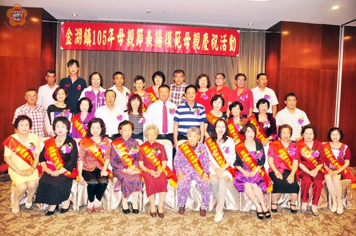圖文/陳冠霖 金湖鎮公所昨(6日)晚在昇恆昌金湖大飯店表揚各里模範母親,由鎮長蔡西湖和鎮代會主席呂瑞泰共同主持,各鎮代表及里長也均出席,場面盛大熱鬧。金湖鎮今(105)年各里模範母親包括,溪湖里呂左毓梅、楊明惠;正義里陳碧月、王許圓治;瓊林里許淑真、何扁;新市里呂翠雲、王美雲、葉玉蓉;山外里呂玉治、楊秀招;蓮庵里林朝鳳、黃秀鳳;新湖里吳瓊治、李秀華;料羅里郭美玉、李黎月。鎮長蔡西湖和鎮代會主席呂瑞泰一一與各模範母親和其家人合照,最後大家再一起大合照,場面溫馨。