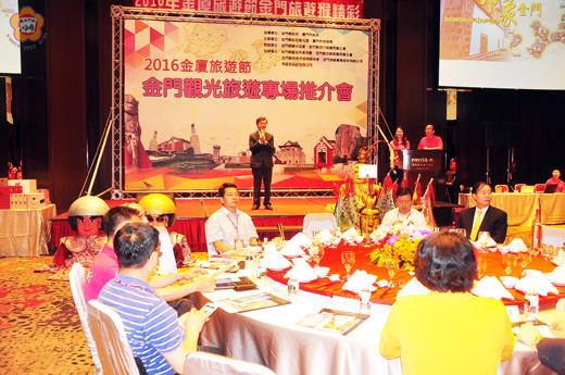「金廈旅遊節-金門旅遊專場推介會暨觀光產業展銷會」昨(6)晚於昇恆昌金湖大飯店盛大舉行,來自大陸地區23個省份旅遊局、旅行商及媒體等近400人訪金兩天一夜,期盼藉由活動,能夠行銷金門觀光,帶動更多人潮來到金門旅遊。副縣長林德恭代表縣長陳福海出席本活動。 副縣長林德恭致詞時表示,本活動首次結合「海峽旅博會」子計畫模式延伸至金門,直接設立「天然的金門展館」,邀請大家親自參觀遊覽,感謝五八旅博會組委會及廈門市旅遊局的大力支持與協助,使得本次盛會得以順利舉行,且邀請將近400位好朋友來到金門。 林德恭提到,「陸客赴台自由行」政策自2011正式啟動至今已開放47個城市,另外加計海西城市小三通自由行之居民,共計有61個城市居民可循自由行模式來到金門旅遊。自2015年起針對小三通陸客來金新增三大政策,分別為「陸客來金可申請臨時入境(簡稱落地簽)」、「陸客來金住宿至少一夜可中轉赴台並免受入台額度限制」及「自8月5日凡福建省外人士到廈門或泉州旅遊可直接延伸至金門旅遊,免回戶藉地辦證」等三大政策,將對陸客來金旅遊之手續更簡便。 林德恭指出,希望透過本次活動讓貴賓對金門有更進一步的認識,同時對如何透過到廈門或泉州旅遊後即以更簡便的方式、更短的時間即可到最接近台灣的金門旅遊,體驗兩地不同的旅遊感受及不同的文化差別,同時親臨金門高粱酒的產地,領略金門高粱酒兩岸飄香的特殊口感以及戰地前線所散發出的豐富元素。更希望透過各媒體的支持,把金門資訊帶回大陸大力推廣,讓大家一同來金門作客。 觀光處表示,基於「金廈共同旅遊生活圈」概念,金門、廈門旅遊局共同於5月至9月份期間,配合兩門重點活動規劃辦理「金廈旅遊節」,以主會場在廈門,副會場在金門模式辦理。往年「海峽旅遊博覽會(五八旅博會)」,主辦單位福建省旅遊局號召兩岸各地旅遊部門及業者赴廈門參展,為有效提昇金廈觀光旅遊人潮,今年觀光處首度與廈門市旅遊局共同規劃「金廈旅遊節」系列活動,首先啟動項目結合旅博會子項目模式,將活動延伸至金門,由廈門市旅遊局共同分攤陸客來金辦證作業及來金船票費用,並於5月6日至7日期間,邀請大陸各省赴旅博會之23省49縣市旅遊局80名領導代表、重點旅行商266名代表與媒體31家等近400人,赴金門實地考察觀光旅遊資源,直接在地設立「金門展館」,將金門之美展現在來訪貴賓眼前。 觀光處以「發現金門」為主軸,向來自大陸各省市貴賓簡報,詳盡介紹金門的旅遊亮點,如戰地文化、閩式建築、生態資源、免稅金門、觀光特產等主題,並詳盡說明目前兩岸便捷的旅遊路線與赴金型態,讓來訪貴賓更了解金門,會中地區10餘間觀光產業者等陸續上台介紹,並與貴賓互動,會場並設置觀光產業展銷專區,除了讓貴賓了解金門特有觀光旅遊資源外,並可挑選購買精美伴手禮,現場氣氛好不熱鬧,儼然成為金門近年來最大型的旅遊盛事。 觀光處指出,本活動主要期望與廈門市旅遊局合作,打造「金廈旅遊節」,並透過大陸各省市旅遊部門主管、重點旅行商及媒體人員親自來金門走一趟,感受金門天然展館的美好,將金門觀光旅遊資源帶回大陸,加大宣傳推廣效益,俾達成百萬陸客來金目標,繁榮及振興地方觀光產業發展。