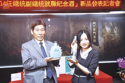 金酒公司於昨(6)日下午召開第十四任總統、副總統就職紀念酒正式發布記者會。金酒公司總經理車正國首先說明金門高粱酒參與國際白酒大賽獲得十金的背景,證明金門高粱酒絕對是最頂級的白酒。接著強調就職紀念酒的整體發行數量,其中普飲款包含0.75L-58度,總數量不到70萬瓶,0.6L-38度,總數僅8萬多瓶;價格維持不變。數量比歷屆總統紀念酒減少許多,約莫僅一半而已。 最讓人關心的精裝限量版有二款,其中瓷瓶裝的是委由經銷商黑松公司開發、設計及銷售;最後黑松公司確定此款紀念酒的總數量為3萬瓶,每瓶建議售價為1500元。車總經理介紹了這款被網友暱稱為「沐浴乳」、「行軍壺」,甚至是「青蛙」的瓷瓶款紀念酒,正面以台灣為主視覺,加上多國Taiwan字體,象徵多元、包容的新台灣文化;背面以總統府為背景,加上正副總統肖像,可以提高收藏價值;這款酒在五月下旬後,會在愛買、大潤發、家樂福等通路限量上架銷售。 另一款由金酒公司年輕女設計師洪絲屏設計的精裝玻璃款就更稀有了,設計理念結合了國家元首的元素、女性元素及金酒元素,簡練雅致的造型,獲得媒體廣泛關注;各界詢問度非常高。車總經理強調,金酒公司此精裝款限量紀念酒,只有8800瓶,絕對是首批,也是最後一批,不可能再增加。由於是中華民國首任女性元首,發行數量稀少,同時售價又非常親民實惠,市場預期增值空間很大,一定會掀起搶購熱潮。 (飲酒過量有害健康)