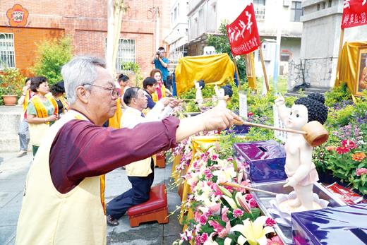 溫馨五月天,今(八)日為母親節,而浴佛節也緊接著即將來臨,佛光山金蓮淨苑昨日啟建「雲水浴佛車」繞行地區各鄉鎮,藉著聲聲佛號,向佛陀頂禮並以水浴佛,尋求心靈的平靜,同時也能祈福母親能夠健康平安,讓大眾感念母恩。 金蓮淨苑雲水浴佛車,於昨日上午八時三十分左右,在金蓮淨苑主持永勤師父帶領佛光會金門協會成員以及四方信眾,舉行一場莊嚴的祈福活動之後,隨即在莊重的念佛聲中,進行浴佛活動,巡迴各鄉鎮。 佛光會金門協會會長余平禧表示,在母親節前夕,佛光會準備了四輛雲水浴佛車,將繞行地區五鄉鎮,該活動進行一整天,深入大小村落,並會選擇定點做停留,讓村莊民眾可以禮佛祈福。