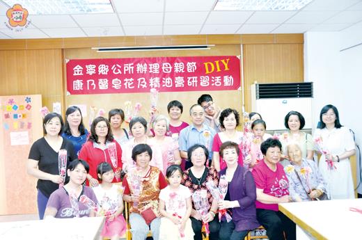 為慶祝母親佳節,金寧鄉公所昨日假金寧鄉圖書館辦理「母親節康乃馨皂花精油膏DIY研習」活動,計有五十多位婦女報名參與,在翁秀娥老師指導皂花製作過程,讓社區婦女參與DIY手工皂花及防蚊精油膏的活動,啟發學員對於手工藝術創作的興趣認知,彼此相互交增進學習樂趣並達到保健功效。 這項由金寧鄉公所主辦、金寧鄉圖書館承辦的「母親節康乃馨皂花精油膏DIY研習」活動,於5月7日下午二時至五時假金寧鄉圖書館二樓舉行,聘請翁秀娥老師指導手工香皂製作過程,作成康乃馨花束及防蚊又環保精油膏,送給參與學員藉以慶祝母親節的到來,並以感恩的心祝福每位母親,願他們佳節快樂。