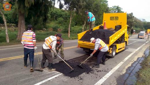 近月來由於霪雨不斷,導致地區部分路段路面破損,許多關心地區道安的民眾紛紛透過養工所免費報修電話主動告知,或經由網路通報或撥打1999轉達,縣長陳福海對民眾主動關心地區道路養護情形除了表示肯定,也多次要求養工所務必要落實平日自行巡查維護作業,如有民眾反映也應在第一時間派工完成,以維人車用路安全。 養工所指出,受溫室效應影響,加上今年本島連續下雨時間特別長或強降雨,道路路面受雨水滲入,致路基承載力減低,經重車輾壓等,道路容易產生坑洞。該所為維護路人的安全,平日除例行安排的巡查外,在雨季期間每日也加派巡查員巡查轄管道路路況,巡查時以白漆標定破損範圍,坑洞較大者則以三角錐警示並計算面積及備料;工作班在外工作時如有發現道路路面坑洞亦即時進行搶修。 養工所表示,地區道路鋪面,常見的有柔性路面(瀝青路面)及剛性路面(水泥路面)二種,其中柔性鋪面鋪設後,易受交通荷重、車輛通過頻繁、氣候變化、雨季及材料配比與施工、材質老化等因素影響,而造成路面破損。因此,如何養護修補以維護路面平整,一直是該所努力的目標,今年度因霪雨霏霏,雨水入滲路基的情況時有發生,路基軟化的結果也造成路面支撐力不足,而產生大小不一的坑洞。另外路面上的孔蓋與瀝青路面的接合處也容易出現破損坑洞,這種情況如積水未乾,或在潮濕方式下進行路面修補,因新舊材料結合性效果本就不佳,修補效果往往是事倍功半,且成效有限。後續經車輛或外力輾壓很容易產生二度剝離損壞,但即便養工所深知雨天施工事倍功半的道理,為了維護人車用路安全,該所還是得在雨天全力以赴,至於修復效果不盡理想或反覆損壞,也只能俟天氣晴朗,再將雨期修補不良坑洞或路面損壞部分重新刨除修復,以維持道路平整美觀及安全。 養工所表示,有關地區道路路況損壞通報方式,除了該所的自行巡查外,該所也受理網路通報、免費電話通報(0800020120)及縣府1999等多重管道接受通報,歡迎縣民多加利用,該所接獲通報後會及時派工至現場勘查,並以最短時間進行路面坑洞修補,以維護道路平整以維護行車及人員安全。另由於養工所同仁在道路上進行搶修,車輛往來頻仍,該所同時也呼籲駕駛朋友遵守搶修工作區之交通指揮不要搶快造成危險,給這群道路英雄一個安心的工作空間,也給往來車輛一個安全的用路環境。