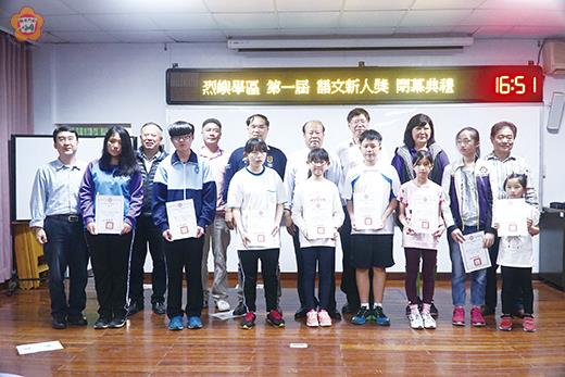強化學童語文能力,提高學習,烈嶼學區昨日舉辦首屆的「烈嶼學區語文新人獎」比賽,共有二十三項比賽,近兩百位烈嶼學區的國中、國小學生參加比賽。 這項由烈嶼地區四所學校共同舉辦的學區語文競賽,於昨天上午八時起持續至下午四時三十分為止,在烈嶼國中內開賽。共有作文、字音字形、寫字、硬筆字、國語演說(朗讀)、閩南語演說(朗讀)等多項賽事。 比賽至下午四時三十分結束,閉幕典禮上,烈嶼鄉長洪成發、教育處處長李文良、烈嶼代表會副主席洪燕玉(校友會長)以及學區各校校長、家長等到場觀禮。 黃明森表示,首屆的語文競賽,是學區利用現有的經費自行舉辦。目的是希望讓學生有互相學習、表達的機會,透過競賽讓學區內的學生,一起向上提昇,有所成長。 李文良對於昨日的活動多所肯定,認為此舉能讓學生有更多的實戰經驗,他特別感謝學校提供此一平台。鄉長洪成發還說,該活動對提升競爭力很有幫助,他也期許從今以後能年年舉辦,他更相信教育處在經費上定會全力支持,如需要公所協助之處,也定會配合。 烈嶼學區第一屆烈嶼盃語文新人獎成績如後: 國小一至二年級組: 閩南語朗讀:第一名,卓環洪翊軒、第二名,西口陳佳宜、第三名,卓環涂馨鍹。 說故事:第一名,卓環陳念慈、第二名,上岐余家樂、第三名,卓環洪雅琳。 硬筆字:第一名,西口孫子晴、第二名,卓環鄭湘薇、第三名,上岐洪瑞君。 國小三至五年級組: 國語演說:第一名,卓環吳俊良、第二名,卓環洪于晴、第三名,卓環林志玲。 閩南語演說:第一名,西口林芯羽、第二名,卓環林瀚亞、第三名,西口洪新雅。 國語朗讀:第一名,西口林祐儀、第二名,卓環蔡羽秦、第三名,卓環林詠潔。 作文:第一名,上岐蘇郁惠、第二名,卓環洪于晴、第三名,卓環吳俊良。 寫字:第一名,卓環林嘉潞、第二名,卓環張羽彤、第三名,上岐洪稚翔。 字音字形:第一名,西口林祐儀、第二名,卓環洪紫欣、第三名,西口蔡宛吟。 硬筆字:第一名,上岐洪稚翔、第二名,卓環林宣妤、第三名、卓環張羽彤。 國小六年級組: 國語演說:第一名,西口洪堅富。 閩南語演說:第一名,西口洪紹恩。 作文:第一名,卓環林沛潔、第二名,上岐吳玟葳。 寫字:第一名,從缺,第二名,卓環洪崇恩。 字音字形:第一名,上岐吳玟葳、第二名,西口蔡迪煌。 國中組: 國語演說:第一名,702吳宗樺、第二名,702蔡裴芝、701林囿芊。 閩南語演說:第一名,701孫子涵、第二名,702蔡裴芝。 國語朗讀:第一名,702洪小蕙、第二名,701洪翊穎、第三名,802林依臻。 作文:第一名,801林于真、第二名,802洪詠絜、第三名,801洪楚雲。 寫字:第一名,702許安雅、第二名,801林于真、第三名,801洪楚雲。 字音字形:第一名,802洪詠絜、第二名,801林東輝、第三名,702王凱新。
