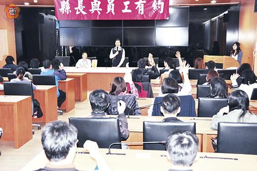 「縣長與員工有約」活動昨天舉辦第五梯次,金門縣長陳福海與來自府內府外一級單位六十四位新進人員座談,了解他們在工作崗位上有何困難和需要協助的地方。同時,陳縣長還為新進人員加油,並鼓勵他們學習、進修、成長和面對挑戰,未來創業和有更好的發展願景! 大家有緣來作伙!陳縣長說二十幾年來,他追求的是希望為金門做一點事情!而且,陳縣長也講訴他從政的經歷,並感受到在一個團體當中,每一個螺絲釘都很重要,想了解在工作崗位上有何需要協助的地方,同時也要求人事部門對於新進人員要建立「師徒制」,並有人從旁協助,很快的進入工作環境和熟悉業務。 陳縣長說,金門現在站在兩岸關鍵的位置,況且金門擁有很好的環境,也是幸福島嶼;但在幸福島嶼建構之下,必須要有一些基礎的,也為金門打下可長可久的發展建設基礎。 時至今日,陳縣長指出,金門已不是以前的金門了,所以兩岸政策和金門基礎就很重要!在發展觀光政策上,他說金門有很好的故事,如戰地軍事文化、閩南傳統建築文化,並保有很好的傳統文化習俗;尤以戰地政務時期,金門沒有很大的開發建設,因此保留下很好的生態資源和景觀,也是金門的「寶」。 自古以來,金門的文風鼎盛,陳縣長表示自宋、明、清以還,金門就有四十餘位進士,在北京進士碑文都有記載;在武的方面,金門有五十位將軍,文武人才輩出,先賢奠下好的人文發展基礎,現今的博士近五百位,可見金門有著很好的文化底蘊和基礎。陳縣長指出,眼前如何打造更好的基礎,讓後代子孫有更好的發展基礎,所以每一個螺絲釘、每一個工作伙伴都很重要! 每一位新進的人員,陳縣長都親自接見,他說接見完之後,除了解想法之外,也希望每位新進人員以做為縣政府一份為榮;同時,人事部門和各單位能夠讓新進人員有很好的發展環境及機會。而且,除了在工作上遇到的或是對於縣政有何建議,陳縣長說都可提出來,也想聽聽看,一起來努力,建構一個更適合居住、更健康的友善島嶼,讓世界、兩岸和更多的人喜歡金門! 在座談當中,陳縣長由財政處開始逐一點名,並詢問「有沒有需要協助的」、「有沒有人教」、「環境好不好」、「習不習慣」、「同仁對你好不好」、「目前擔任何種工作和任務」,皆與新進人員切身相關!有新進人員答說很好時,陳縣長問說「真的嗎?還OK嗎?」陳縣長也說辛苦了,縣長給你們加油! 有一位台大資管系畢業的,目前在警察局服務,陳縣長聽完他的工作說明後,覺得「可惜了!」有機會要把他調到縣府服務,發揮所學所長。陳縣長說,新進人員進入縣府單位服務,是希望了解政府行政運作,縣府也要打造年輕人返鄉創業的環境條件。同時,陳縣長期許新進人員在政府部門有好的貢獻,最重要的是學習和往前走! 一位環保局新進員工建議金門要建立屬於自己的檢測中心,不仰賴他人,確保金門的環境品質!陳縣長表示,自上任後就構想建構國際級質量檢驗中心,建立金門原物料、食品、水源,有著更高的檢驗標準和品牌。同時,陳縣長也謝謝他提出的建議,並希望新進人員在任何工作崗位所看到的問題,都可以提出來,並相信有能力解決問題! 陳縣長提到去年他以「正心正念」來推動縣務施政工作,讓人民受到正向能量,提升金門的價值觀。今年則以「智慧慈悲」,他說智慧沒有煩惱,慈悲沒有敵人;所以,陳縣長勉新進人員要感恩惜福,用同理心、慈悲來對待他人和自己,發揮愛及展現愛、慈善的力量。 另,有一新進人員建議說金門在推展觀光,希望能夠做環境教育納入,以及建立使用者付費的觀念,透過觀光和環教,讓垃圾變黃金。同時有一位新進人員關心兒童閱讀教育,他希望能推動讀經會考活動,奠定兒童國學教育基礎。陳縣長說他想從國小學校到圖書館、朱子祠定位「國學圖書館」,整個閱讀島要翻轉,提升金門的閱讀和文化水準。 最後,陳縣長期勉新進人員說面對大環境,他有信心;只要有心、有智慧,力量就會出來!他與新進人員相約一起努力,因為金門這塊土地是大家的,共同來守護,建立一個更人性化和友善、美好的島嶼!