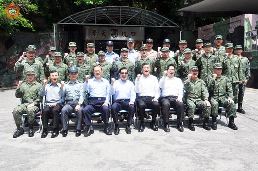 繼今(105)年農曆除夕後,總統馬英九昨(29)日上午再度到訪金門,為古寧頭和平紀念園區的「兩岸和平紀念碑」揭幕,不過在這之前他先前往金防部視導官兵,在擎天廳內對著650位官兵發表精神講話,事後頒贈加菜金,並與金防部重要幹部合影。馬英九在致詞中肯定國軍保衛前線與救災的辛勞,並在卸任前再次提到自己改善兩岸關係、大量採購軍武、提升國軍體能、推動募兵制等多項「政績」;對於近日我國與日本「沖之鳥礁」爭議,馬英九強悍痛批日本「既違法,又擴權」,表示將會反對到底。 總統馬英九致詞時說,這是他上任8年以來,第14次來到金門,應該也是卸任總統職位之前,最後一次來到金門,加上今年端午節時他已經卸任,因此提前到金門探視官兵,向這些國軍弟兄長年駐守國疆的辛勞表達嘉勉肯定之意。 馬英九肯定國軍,他表示,國軍在金馬外島前線的固守,是鞏固兩岸和平的基石,他回顧金門歷史,包括民國38年古寧頭戰役、39年大二膽戰役、43年九三砲戰、47年823砲戰和料羅灣海戰,在過去46次大大小小作戰中,有6400多位國軍官兵殉國、5800多位官兵負傷,許多先烈先賢浴血奮戰,秉持犧牲、團結、負責的精神,保衛金門和台灣的安全;馬英九說,國軍從黃埔建軍之後,歷經北伐抗戰、光復台灣、保衛台灣、建設台灣、守護台灣,在每一個歷史的階段,國軍都發揮關鍵的影響。而政府為了紀念抗戰勝利,發出17000多枚的「抗戰勝利徽章」,另外,在戰地和國軍配合、長期投入作戰的居民民防隊,政府也特別製作「保衛台灣紀念章」,彰顯這些參與過戰役的居民們對國家的付出犧牲與貢獻。 馬英九提到他最滿意的兩岸關係政績,他強調「止戰而不拒戰,備戰而不求戰」、「對話取代對立,和解取代衝突」,對於中國大陸,政府的態度是「兩岸關係制度化」、「兩岸和解常態化」,讓雙方不會任意片面改變台海現況,他強調,這是非常大的力量,讓決策者不會用「非和平」的方式解決彼此爭議。馬英九說,自己過去8年內改善兩岸關係,使得台灣海峽從過去幾十年是「衝突的熱點」,如今變成「和平的大道」,他說,台灣海峽成為古寧頭戰役之後全世界「最和平、最穩定的海峽」,舉世稱道。馬英九甚至拿韓國相比,他提到,即使韓戰停戰至今60多年,朝鮮半島還是戰雲密布、風聲鶴唳,北韓不斷試射武器,令朝鮮半島始終處於不安定的狀態,相形之下,台灣海峽「完全不一樣」。 不過,馬英九也提到,儘管我們希望海峽兩岸永遠保持和平,儘管我們期望繁榮永續,但是國軍建軍備戰的能力仍不能鬆懈。他指出,執政8年來努力提升國軍體力戰力,採購的先進武器超過過去任何一個時期,他說,任內跟美國政府採購武器耗資高達201億美元,同時也舉兩位前總統相比,陳水扁任內8年採購84億美元,李登輝任內12年採購162億,馬英九對於自己任內投注軍武採購金額高於前兩位總統,顯得十分自信,他也強調這些錢都「花在刀口上」,以採購防禦性武器較多,且大多是為了汰舊換新。 馬英九也談到,他上任後致力推動國軍體能戰技的提升,實施國軍2分鐘伏地挺身、仰臥起坐以及3000公尺跑步檢測,他說,當年剛推動時第一次抽測的合格率只有28%,如今已經拉高至90%,甚至會游泳的官兵人數,也從原本的47%提升至80%;也因為國軍推動體能檢測,連帶帶動其他單位包括警政署、海巡署,甚至各級學校一起加入推廣。馬英九還回顧自己擔任台北市長任內,在各學校興改建80座游泳池,他說,小朋友不會游泳「不能畢業」,還因此讓夏天的溺水人數逐年下降。除了提升國軍體能和戰力之外,馬英九說,自己任內也改善官兵待遇,如去(104)年4月起,戰鬥部隊發予勤務加給,而立法院也在去年9月通過「推動募兵制暫行條例」,使得政府改善官兵待遇有法源依據。 馬英九也大談募兵制政績,他說,政府推動募兵制到目前為止,「成效超過預期」,他舉數字證明,前年募兵目標1萬人,3萬多人報名,招收1萬4000多人,去年募兵目標1萬4000人,同樣3萬多人報名,招收1萬8000多人,而今年到目前為止,招收3700多人,已達成目標約25%。志願役留營部分,馬英九說,募兵制推動後,志願役留營率從40%提升至61%,去年達到73%,今年目前為止是76%。馬英九說,由此可見,募兵制「非常順利」,外界說募兵招不到兵,是「胡說八道」。 馬英九肯定國軍救災表現,他說,國軍在八八水災之後,增加了「災害防救」的中心任務,秉持「料敵從寬,禦敵從嚴」、「防災重於救災,離災優於防災」的宗旨,他說,國軍救災採取在作戰時的策略:「超前部署,預置兵力,隨時防救」,並且貫徹至中央及地方政府災害防救的措施當中,讓近年災害損失降到最小程度。馬英九指出,從民眾角度而言,每當災害來臨時,推窗望外看到穿迷彩服的國軍弟兄,他們就「感到放心」,他強調,這種感覺是「千金難買」,民眾對政府的信賴是政府最寶貴的資產。馬英九也提到,國軍的災害防救工作更獲得國際稱道,國軍不只在國內救災,還經常出國救災,包括海地、菲律賓、敘利亞、西非、加勒比海、尼泊爾、薩爾瓦多、伊拉克、瓜地馬拉等國,都曾經有我國國軍救災的身影,讓各國感覺到中華民國的存在,使國際社會支持,也獲得美國官員肯定中華民國的國際人道援助。 致詞中,馬英九也主動提到近日我國與日本有關「沖之鳥礁」的爭議,他堅持主張,說「沖之鳥礁」是一個「礁」,不是一個「島」,它只有9平方公尺,相當於2張桌