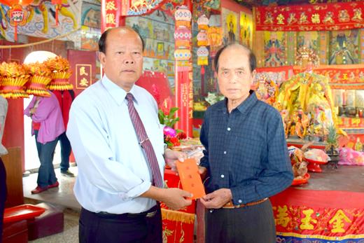 金門縣天后宮慶賀天上聖母千秋聖誕,熱鬧舉行作醮活動,烈嶼鄉長洪成發也專程「過海」上香祈福,敬獻爐敬金,祈求「媽祖」的護佑,鄉親平安,地方安寧。 洪成發於日前專程到南門天后宮上香祈福,受到南門天后宮管理委員會主委李誠智及廟方人員的熱烈歡迎。洪成發也敬獻爐敬金,表達一份虔敬的心意,由主委李誠智代表接受。 金門縣天后宮慶賀天上聖母千秋聖誕,從昨日起一連兩天熱鬧舉行作醮活動,洪成發帶領鄉公所秘書方小萍、課長、幹部,搭乘交通船前往天后宮上香祈福,受到天后宮管理委員會主委林長獻、副主委林永壽、副總幹事張含麗、媽祖會會長林明麗、前會長吳素蘭及廟方人員的熱烈歡迎。