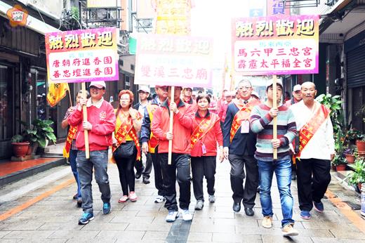 五地神明齊聚會、三忠王廟喜相迎!馬來西亞馬六甲三忠宮和霹靂太平福全宮、新加坡唐朝府和善忠壇、新北市雙溪三忠廟,五間廟均為主祀大宋三忠王張世傑、陸秀夫、文天祥之宮廟。三地五廟日前聯合前往大陸進香,昨日並齊聚金沙參與三忠廟醮慶活動,陣頭旗輦所到之處可說是人氣沸騰、鑼鼓喧天、熱鬧非凡! 這五間廟信眾九號到大陸同安三忠王祖廟進香,並於昨日下午上由廈門坐船抵金,造訪到沙美萬安堂和內閣三忠廟進香及宗教文化交流活動。由五間廟組成的進香團,受到萬安堂管理委員會及境眾旗、鼓、輦、轎大陣仗熱烈歡迎,於沙美車站迎接五間廟的三忠王神尊及令旗和團員,繞新舊二街到萬安堂和內閣三忠廟。 萬安堂和三忠廟主任委員黃瑞華表示,為迎接五間廟的三忠王神尊及令旗聖駕沙美,萬安堂管理委員會特別在三忠廟作醮二天,三忠王亦為此次五間廟來到沙美進香,乩示「龍虎鳳會,日日乃昌,月月是興,千秋神靈,萬年人安。五句分句做成五塊紀念牌,每塊紀念牌一句,分送五間廟各一塊,以記今日會香盛況。」 而據新加坡信眾說,老一輩有說,早期沙美有一位大道士,叫吳文波,常會到新加坡、馬來西亞一帶作火醮和海醮,每次做醮,醮壇都會放一尊三忠王神尊。而據萬安堂前任主委張雲盛說,三忠王在沙美第一次採乩,採到的乩身是張珪蒲,桌頭是吳文波、張延楚、張珪湧。吳文波是名列當時金門第一大道長,老一輩也有過吳文波常下南洋作醮,是現沙美正一妙化壇吳明福大道長的伯公,吳明福大道長現所用經懺,就是吳文波遺留下來的。
