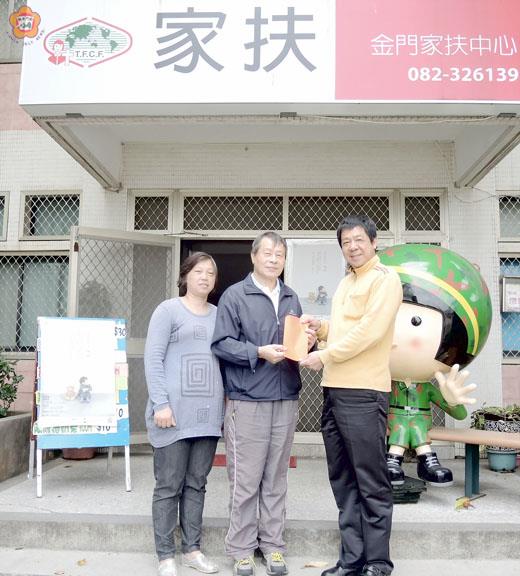 旅台鄉親楊水應夫婦,雖旅居台灣但不忘對故鄉弱勢群族、學子伸出援手。近年來每年皆捐款給金門家扶中心及大同之家,今年也不例外。昨日上午由親友代表將各新台幣十萬元款捐贈給上述兩單位。分別由家扶中心主任李桂平、大同之家主任楊志斌代表接受,感謝也感佩楊水應老先生的愛心和善心。 據悉,旅台鄉親楊水應夫婦,每逢清明時節如非有無法分身之事務必定親率家人返鄉掃墓及探親,並且不忘對弱勢團體送上自己的愛心,金門家扶中心、大同之家是其常造訪關懷的對象,今年因行程關係無法親自前往,特別委託親友將夫婦倆的囑託和心意帶到金門家扶中心及大同之家,各捐贈新台幣十萬元款項。 楊水應夫婦昨由親友代表到金門家扶中心、大同之家捐款,並轉達夫婦倆的關懷之意,由金門家扶中心主任李桂平、大同之家主任楊志斌代表接受,除了代表受扶助者向夫婦倆致謝外,也感佩長期以來對家鄉弱勢的善心義舉。 金門家扶中心表示,楊水應先生早年於戰地金門生活困頓,四十七年赴台經商迄今,有感於過去年少時期也吃了不少苦,現今兒女皆在各自的工作崗位上盡責努力,外出打拚得到小小成就,且深感「有能力、做得到」就應該為家鄉貢獻一點心力。約從民國八十五年起,逢清明時節返鄉祭祖後,就會在兒女陪同下到金門家扶中心、大同之家走走,看有無可協助的地方,也必會關心弱勢家庭、院童以及長者的生活。 而楊水應夫婦人在台灣心在故鄉,除了關懷地區弱勢,捐助縣政府及學校教育經費,對金門家扶中心的弱勢幼童和大同之家的老人和院生的關懷也沒斷過。今年也各捐贈新台幣十萬元給金門家扶中心和大同之家。 為此,金門家扶中心主任李桂平表示:金門鄉親因戰地情勢影響,早期大多只能出外奮鬥發展,有所成就後皆不忘家鄉的鄰里鄉親,尤其對弱勢族群更不吝於伸出援手。楊水應老先生以九十四高齡仍親身關懷弱勢族群實為可貴,也讓後生晚輩們更為尊崇,並期盼一起來為這個幸福城市獻上全方位的關懷,打造出金門用愛包圍兒童的快樂天堂。