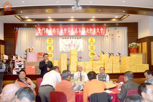金門縣董楊宗親會昨日舉行清明祭祖暨召開第九屆第四次會員大會並舉行聯誼餐會,縣府秘書長黃景舜代表縣長陳福海到場向大家致意,也感謝大家對於縣政的支持,並希望持續支持縣府,為大家提供更好的服務。立委楊鎮浯強調會全力配合縣長陳福海的施政方向,為金門爭取權益、服務鄉親。 金門縣董楊宗親會昨日上午先舉行清明祭祖活動,接續於十一時三十分許假盈春閣餐廳召開第四次會員大會,由理事長楊誠璽主持,會員出席相當踴躍,縣府秘書長黃景舜、立委楊鎮浯、議員楊永立、縣府秘書李文俊、社會處長甯國平等到場參與。 楊誠璽理事長感謝各區理事長與宗長長期熱心的支持,讓各項會務都能順利的進行。他說,舉行祭祖活動是慎終追遠,永懷祖先德澤,希望祖先庇佑子孫綿延,一代比一代更興旺。 楊誠璽也以「正誼明道、廉垂四知」八字祖訓與宗親共勉,期望子孫奉行,發揚宗族文化,團結和諧,薪火相傳,並進一步形成社會風氣。 秘書長黃景舜代表縣長陳福海向大家致意問好,也感謝大家對於縣政的支持,他說,一○四年各項縣政推動順利達到目標,像是陳縣長政見中發放五十五歲到六十四歲自衛隊員三節慰問金也已落實,縣府各項施政不斷在推展,建設方面,像是環島北路的逐步拓寬,第一標已經發包,第二標也會發包出去,而水頭碼頭通關中心的大工程,縣府在針對地區發展需求,進行內部設計檢討後,也會陸續來辦理發包作業:::等。他也提到,春節期間鄉親返鄉與赴台的機位問題,縣府與楊鎮浯立委辦公室除了事先積極的聯絡協調,在春節期間更與民航局、航空公司密切協調聯繫加開班機輸運旅客,讓所有鄉親都能順利往返台金。黃景舜秘書長也說,今年縣府團隊秉持著陳縣長「慈悲、智慧」的服務理念,致力於各項縣政的推動,讓鄉親有感。也希望大家持續支持縣府施政,讓縣政推動越做越好,為鄉親提供更好的服務。 立委楊鎮浯也感謝董楊宗親對他的支持,讓他有機會為鄉親服務。他也說「宗族是根本、宗親是力量、宗長是靠山」,讓他更有力量向前走,他會全力配合陳縣長的施政方向,在立法院與中央來為金門鄉親爭取權益、服務鄉親。 昨日會中也進行工作報告,討論該會今年的重點工作計畫等案。會員大會後接續舉行聯誼餐會,並穿插摸彩活動,宗親趁著難得的聚會聯絡情誼,氣氛相當熱絡溫馨。