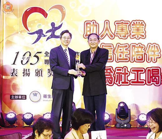 自軍旅退役之後,在縣政府社會處任職近十七年的金門縣政府家庭暴力暨性侵害防治中心社工督導林德輝(見圖右)長期致力於家庭暴力及性侵害防治業務;他優異表現榮獲「105年度全國社會工作專業人員服務績優獎」及「金門縣105年度績優社工人員獎」殊榮,並於日前赴衛生福利部接受表揚,行政院長張善政親自頒獎的殊榮。值得一提的,林德輝也曾獲頒「93年度全國推動家庭暴力及性侵害防治工作有功人士」、「95年度全國社會工作專業人員服務績優獎」,這次已是他第三度獲得全國表揚的殊榮,實至名歸。 林德輝自政戰學校社工系畢業,他的軍旅生涯總共十餘年的服務資歷。退伍後,林德輝轉入縣政府家庭暴力暨性侵害防治中心服務,自八十八年起於人力不足狀況下,承接本縣家庭暴力暨性侵害防治工作業務,並涉及婦女福利服務、兒童及少年福利服務、社會救助、身心障礙福利服務等相關業務,許多棘手個案經由其處理之後皆能迎刃而解,服務迄今已逾十六年七個月之久,除將專業知能運用於實務工作上,在輔導新進社工更不遺餘力、傾囊相授,更將實務經驗撰寫成著作供家防中心社工運用參考,其無怨無悔之服務精神,足堪表率。 從無到有,金門縣家庭暴力暨性侵害防治中心均由林德輝一手籌設規劃,並於八十九年一月廿七日正式落成啟用,林德輝說,防治中心成立後六年期間,僅有他一人負責本縣是項業務及個案之處理與輔導,並訂定相關社會法令規章及行政規範,以落實家庭暴力暨性侵害防治業務之推展。 林德輝於93年度,他榮獲第二屆「全國推動家庭暴力及性侵害防治工作有功人士」;此一獎項乃由內政部聘請專家學者及中央相關部門組成評審小組,而且該獎每屆僅表揚三名公務體系社工;當年度,林德輝為防治網絡公務人員社政類獲獎人之一,值得一提的,他更是全國第一位男性獲得此獎者,並也是本縣迄今唯一獲得此獎項殊榮之有功人員。 林德輝秉持不斷吸取新知、充實專業知識,以服務地區弱勢族群,他也利用個人休息時間繼續完成碩士學業,同時將實務經驗完成「女性新住民遭受家庭暴力的因應模式與求助歷程—以金門地區為例」之論文著作,提供家庭暴力防治中心社工員參考運用。 榮獲105年度全國及本縣社會工作專業人員服務績優獎殊榮,林德輝的得獎感言除感謝縣府長官對他的肯定外,同時也藉此鼓勵有志投入社會工作的夥伴,平時多充實專業知能做好服務準備,注意社會動態,秉持對這一份工作的熱忱,並應以同理心來面對所有的個案,有耐心、有毅力、持之以恆一定可以做好這份工作。