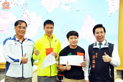 金牌選手何盡平林子琦 各獲縣府頒發75萬獎金