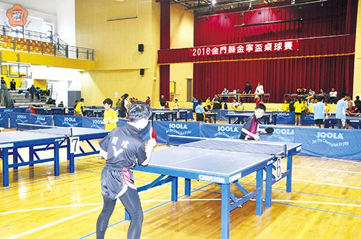 2016金寧盃桌球賽,昨日假國立金門大學體育館進行一連兩天賽事,計有55隊350位選手參與競技。從國小組到社會組的選手透由比賽,相互切磋球技。閉幕典禮於今日下午二時三十分舉行,頒獎獎勵績優團體和個人。鄉長陳成勇歡迎大家到金大體育館感受各組選手激烈競賽的氛圍。 金寧盃桌球賽於昨日上午八時三十分舉行開幕典禮,由鄉長陳成勇主持,縣府參議許寬、教育處處長李文良、金寧鄉代會主席陳成泉、副主席李開陣、鄉代表辛愛華、李正騰、翁明惠、林金月、陳秀金、金大副教授吳一德、胡巧欣、鄉公所社會課長蔡世舜、村長、學校校長以及桌球委員會幹部在場為選手打氣。 來賓們先後致詞鼓勵選手相互切磋球技,提升技能,也期望透由競賽來帶動桌球運動的熱潮,為地區培育更多優秀桌球好手。來賓們的開球儀式,為這一次球賽點燃兩天賽事的戰火。 鄉公所指出,該項比賽分社會男子組、社會女子組、國中男生組、國中女生組、國小男生高年級組、國小女生高年級組、國小男生中年級組、國小女生中年級組等八組團體賽。社會男子、女子組、國中男生組、國中女生組團體賽採四單一雙(單、單、雙、單、單)五點制。國小男生組、國小女生組團體組採五點單打制。團體組優勝隊伍頒發獎金。各組優勝隊伍頒發獎金。 首日的賽事,場場精彩,各組的桌球選手齊聚一堂較技,尤以國小組的小選手,拚勁十足。學生組參與熱絡,教練在旁督戰,提醒子弟兵發揮平時受訓的球路與戰術,來爭取佳績。社會組的選手,不乏老將,包括金門醫院陳根雄主任等桌球好手,在球場上嶄露球技,不但能讓學生學習到前輩們的經驗,也增加戰場歷練,透過比賽,提升選手競爭力。 今日持續進行各組的賽事,整個賽事預定於下午二時三十分許告一段落,隨即舉行閉幕儀式,頒發獎盃及獎金來獎勵績優球隊和選手。