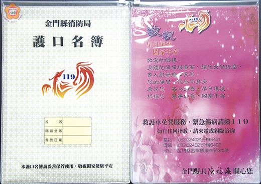 為提升獨居與失智老人救護服務品質,減少救護送醫頻率,提高急救成功率,金門縣消防局全力推動「護口名簿│獨居與失智長者救護加值服務專案」,除了原本119到院前緊急救護工作外,結合社會處、衛生局、警察局、金門醫院等,提供更多救護加值服務,共同守護獨居與失智長者;專案已列入105年度健康城市與高齡友善城市示範計畫,展開服務項目以創新、實用、有感為主,以貫徹縣長陳福海的施政主軸。 消防局指出,由於生活水準提升,醫藥科技發達,相關福利措施健全,國人平均壽命一再延長,65歲以上老年人口比例逐年上升;鑒於獨居與失智長者屬於老人族群的弱勢者,公部門有必要研擬相關施政作為,以滿足獨居與失智長者各項服務需求。縣長陳福海全力建構金門成為健康暨高齡友善城市,要求縣府團隊全心推動「健康城市,幸福金門」政策,落實「建構金門幸福願景,守護浯島美麗家園」理念,發揮團隊合作精神,跨局處整合,用更前瞻的守護與關懷,落實對高齡長者的照護,全力營造健康暨高齡友善的環境,從而預劃自己未來的高齡生活。 消防局原本執行到院前緊急救護勤務,將患者送達金門醫院急診室,交由醫護人員接手後即完成任務,患者若有其他服務需求,則需自行尋求相關單位協助;為貫徹縣長施政主軸,消防局特研提「護口名簿-獨居與失智長者救護加值服務專案」創新作為,列為105年度重點推動項目,除原有119緊急救護服務外,進一步擴展服務範圍,提供更多救護加值服務;結合社會處、衛生局、警察局、金門醫院、金門縣生命線協會、志工(義消)及社區民眾等,提供十大項創新、實用、有感之救護加值服務,以團隊力量,共同守護獨居與失智長者,列舉如下:(一)救護服務證明(二)CPR及哈姆立克法教學(三)緊急救援連線系統(四)愛心手鍊(五)季節性流感疫苗、肺炎鏈球菌多醣體疫苗接種(六)金好康健康檢查(七)失能老人輔具購置及居家無障礙環境改善補助(八)道路交通安全宣導(九)警勤區關懷(十)協談志工關懷(服務項目將依執行成效,定期檢討增減)。 本縣消防同仁腦力激盪,設計出全國首創之「護口名簿」塑膠夾鏈袋,請廠商專門開模生產,正面印有「護口名簿」字樣及119鳳凰標誌,底圖係模擬真正「戶口名簿」花紋,讓長者眼睛為之一亮,感受到公部門的用心,另設計放置長者姓名卡之收納袋,讓收到的長者有專屬感;背面印有縣長署名之關懷卡,讓其感受溫暖與善意,祝福早日康復,閣家平安,另註明消防局的聯絡方式,方便長者迅速查看,以尋求協助。夾鏈袋內放置下列物品:(一)問卷:調查長者的滿意度、需要公部門提供救護加值服務項目及其他建議事項,藉由長者寶貴意見,做為內部統計分析及救護勤業務參考。(二)回郵信封:已貼好郵票,方便長者免付費寄回問卷。(三)宣導文宣:讓長者參閱,以了解各項救護加值服務內容。(四)申請表:讓長者填寫,藉以申請各項救護加值服務。 為順遂推動本專案,消防局遴選善心、熱忱,願意為長者服務,且具備專業能力之鳳凰志工、婦宣或義消,納編為「護口名簿專責小組」成員;在本縣35個村里各配置1名居住在當地或鄰近地區之專責人員,就近協助推動各項工作;另禮聘國立金門大學護理學系何瓊芳博士擔任顧問,借重何博士在老人領域專業學識及豐富實務經驗,提供專業建議與技術指導;已於104年12月26日舉辦教育訓練及救護技術比賽,召集「護口名簿專責小組」參加,績優選手擔任種子教官,負責指導同仁執行本專案各項工作。各消防分隊執行獨居與失智長者救護勤務返隊後,將通知各村里專責人員前往其居所或醫療院所進行關懷訪視,並發放「護口名簿」;長者可利用內附的問卷,填選滿意度、救護加值服務項目及建議事項;消防局回收問卷後,將進行妥適處理;若對救護服務不滿意,則指派專人前往溝通致意,並針對不滿意處檢討改進;若有勾選需要公部門提供救護加值服務項目,則協調相關局處提供服務;若有填寫其他建議事項,則納入救護勤業務參考。 局長楊肅凱期勉專責人員全力以赴,積極推動本專案,提供獨居與失智長者最優質的服務;雖然本專案不是消防法定工作,但消防同仁仍願意為長者提供更多有感服務;每個人都會老,關懷今日的長輩就是關心未來的自己。消防局將秉持過去優良傳統,精益求精,推動各項便民創新服務,以良好工作態度與具體方法,保障長者生命財產安全。