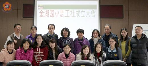 金湖國小志工社昨(23)日成立!推選出社長董雅雯、副社長李錫威及總幹事許秋萍。希望藉由志工規劃,讓學生在多元豐富的教育環境下成長。金湖國小代理校長陳為信表示,湖小志工社行動力極強,今天將立即上路,帶領志工們協助學校整理圖書,歡迎家長們踴躍加入。 金湖國小昨日上午舉行志工社成立大會,雖然外面大雨滂沱,但志工出席人數仍然相當踴躍,大會現場可見教師與志工們交流熱烈,並於會中順利推選出正副社長及總幹事。 金湖國小指出,志工社成立的目的是希望藉由志工自主的規劃與協助,讓學生們能在更多元豐富的教育環境下成長,同時藉由志工的專長與經驗,提供孩子更優質、知性的教育環境。 昨日會中,代理校長陳為信分享學校未來的規劃與展望,也感謝願意加入志工社的好夥伴們。陳為信表示,志工能促使學校各項事務順利運作,教師更能專注於準備教學工作,孩子們也能平安、活潑地展開多元學習活動。另外,各處室行政同仁也進行簡易的業務報告,同時提出人力支援需求,立刻獲得現場志工積極的回應。 大會同時也進行第一屆社團幹部的選舉,推選出社長董雅雯、副社長李錫威及總幹事許秋萍。目前社員30人有:王嘉琪、薛之雅、呂文凱、陳婉晴、黃瑜君、李曉君、莊淑萍、莊美蘭、李錫進、林美利、蔡喬如、李玉蘭、孫信忠、吳碧蘭、李美玉、李玟瑩、蔡憶玲、蕭永志、陳筱茵、許慧雅、莊惠祺、黃愛鳳、柯佳雯、林瓊鈺、蔡 艷、歐陽萍、蔡永芳、呂怡艷。社長董雅雯領航的志工團隊熱忱度十足,行動力極強,今天將立即上路,帶領志工們協助學校整理圖書,以方便學童們借閱,湖小志工社歡迎家長們踴躍加入,親師共同合作,協助孩子們快樂成長。