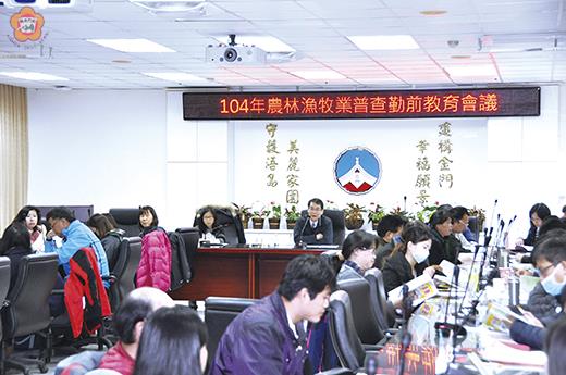 全國104年農林漁牧業普查即將於今年四月一日起至五月三十一日止全面展開;金門縣政府昨日舉辦「104年農林漁牧業普查勤前教育」會議,由縣府主計處長杜世萌主持,各鄉鎮普查主要幹部、工作人員參加。並由行政院主計總處專員徐宜霙、金門縣政府建設處科長鐘立偉為普查員就普查概要及作業規定等作提示。 縣府主計處長杜世萌表示,104年農林漁牧業普查即將展開,本縣業已於二月一日掛牌成立普查處;各鄉鎮亦於二月十六日成立「農林漁牧業普查所」,並由各鄉鎮長擔任普查所主任,全面推動辦理普查工作。 農林漁牧業普查係根據我國統計法規定,每五年舉辦一次的基本國勢調查,自民國四十五年首次創辦,本次為第十三次辦理,其主要目的在於蒐集農林漁牧業資源分布與應用、農村家庭及勞動人口結構、農漁產品生產銷售概況等最新基本資料,並因應行政院農業委員會所推動農業生產力4.0策略,蒐集生產、加工、休閒及銷售服務等六級化產業資訊,以建構農業價值鏈為核心,推動農業加值升級,供為政府研訂農林漁牧業施政方針與輔導方案之重要參考依據。 杜世萌表示,此次普查以104年十二月三十一日為普查標準日,凡屬靜態資料均以該標準日情況為準;以104年一月一日至104年十二月三十一日為普查標準期;普查期間為105年四月一日起至五月三十一日止,凡屬動態資料則以該標準期情況為準。普查家數總共5,088家,將投入的人力,調查人員有48人,行政人員38人,總計86人。 杜世萌並指出,行政院主計總處對此五年一次之農林漁牧業普查至表重視,特別呼籲全國農林漁牧業經營者,全力支持配合政府普查工作,提供詳實普查資訊,俾據以研訂適切農業政策,全面提升農民福祉。 杜世萌也以辦理本次普查,提出三點與普查員共勉:一、熟悉普查作業,掌握資料確度:對於普查的制訂原則、訪查重點、填表須知及各項作業規定,普查同仁應仔細研讀,務求切實掌握普查對象,獲得正確翔實普查資料,以正確即時反映農林漁牧業發展趨勢,供政府決策應用。二、充分協調溝通,降低訪查疑慮;為使民眾能於普查前獲知普查訊息,期透過各種管道廣為宣傳,並經由大家積極協調溝通,傳遞普查目的與用途,適時說明個別資料之保密,以強化民眾信任,爭取民眾支持。三、發揮團隊精神,完成普查任務:普查業務龐雜,從實地訪查至回表審核等工作,可說是經緯萬端、環環相扣,端賴各普查員及同仁本著服務熱忱,戮力合作,克服問題,如期如質完成普查任務。 每五年進行一次的農林漁牧業普查,將自今(105)年四月一日起至五月三十一日止。「金門縣農林漁牧業普查處」也於二月一日正式掛牌成立。金門縣農林漁牧業普查處依規定置處長一人,由縣長陳福海兼任,負責綜理處務;副處長一人,由副縣長林德恭兼任,輔佐處長辦理處務;執行委員有縣府秘書長黃景舜、建設處處長許志忠、民政處處長王中聖、執行委員兼總幹事杜世萌、執行委員兼副總幹事王垣坤、賴志芳、普查組組長鐘立偉、副組長樊德正、審核行政組組長梁惠綾、副組長陳雙梅、幹事翁秀英、李姿維、陳俊良、楊勝智、李怡潔;兼任期間為今年二月一日起至七月三十一日止。