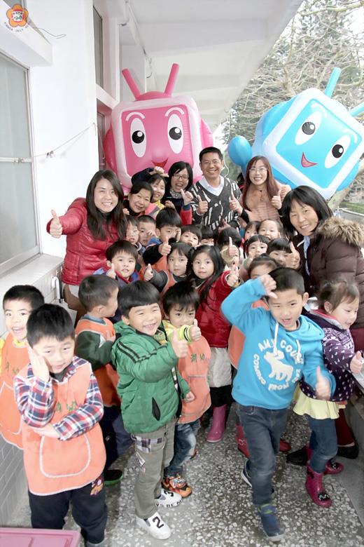 兒童節將至,湖小附幼的小朋友們昨(24)日度過一個快樂的下午,同樣是湖小畢業的名城電視台董事長許雪芳捎來大禮,送給每位小朋友可愛的造型氣球和妖怪手錶吸管杯;現場出現2尊巨大的充氣寶寶,名城電視台吉祥物「名名」和「城城」,讓小朋友又驚又喜,搶著和他們擁抱。 名城電視台董事長許雪芳,昨日帶領名城電視多位員工,來到金湖國小幼兒園發送兒童節禮物,送給總共301位湖小附幼的小朋友,每人一個可愛的造型氣球以及妖怪手錶吸管杯,小朋友拿到的造型氣球都不一樣,每個人都笑嘻嘻、樂翻天。 更讓小朋友驚訝的是,現場來了名城電視台的代表娃娃「名名」和「城城」,兩個巨大的充氣寶寶,光是舉手走路的小動作都特別可愛,強烈吸引小朋友的目光,許多小朋友更是衝上前去要和「名名」、「城城」擁抱,一起玩球球抱抱活動,宛如成了名城電視台的人氣吉祥物。 為了感謝董事長許雪芳贈送禮物,湖小附幼的小朋友們也現場表演一段活力體操舞,還熱情邀請董事長許雪芳以及金湖國小代理校長陳為信下場一起跳體操;在「名名」和「城城」陪伴一起跳之下,小朋友跳得十分賣力,一首跳完還不夠,再跳第二首,有禮物可以拿,小朋友們活力源源不絕。 名城電視台董事長許雪芳說,自己就是湖小畢業的,以「學姊」的身分回到母校送給小朋友們兒童節禮物,希望每個小朋友都有快樂的童年,也希望帶給小朋友們一個快樂的下午;同時她也勉勵小朋友們,回家要多和阿公阿嬤、爸爸媽媽等家人和樂相處,做一個貼心懂事、認真學習、健康快樂的乖寶寶。小朋友們聽到董事長許雪芳也是湖小畢業,紛紛大喊「學姊好」! 金湖國小代理校長陳為信僅代表全校師生,感謝傑出校友董事長許雪芳,經營事業有成之餘,又能發揮企業對社會感恩服務的精神,積極回饋母校,關懷學弟妹的學習與成長,陳為信也期勉小朋友日後能以董事長許雪芳為楷模,回饋母校,讓這份暖暖的教育愛傳承下去。