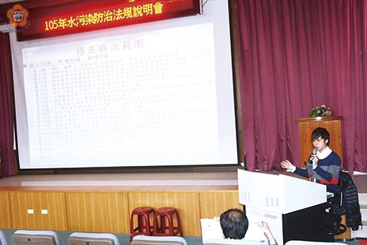 水污染防治法規已於一○四年二月四日修正公布,為使業者均能確實並瞭解水污染防治法相關規定,如:許可申請審查辦法、檢測申報及水污費徵收相關事宜,環保局昨日邀集了本縣水污染列管事業的業者進行法規說明會,促使業者遵循法令規定運作執行,提升辦理成效。 環保局這項「水污染防治法規-許可申請審查辦法、檢測申報管理辦法及水污染源管制系統公開查詢平台系統宣導說明會」,昨日下午在環保局大會議室舉行,由環保局科長李欣主持,包括金酒公司、塔山電廠、水廠等單位以及本縣水污染列管事業業者代表近四十人到場參加。 會中並由環科工程顧問股份有限公司謝嘉鴻擔任講師,以「許可申請審查辦法修正說明及檢測申報管理辦法修正說明」、「水污染源管制資料管理系統及公開查詢平台系統說明」二項主題進行解說,讓參加的業者進一步了解法規修正的重點,以及相關實務操作的要領。 環保局指出,因應水污染防治法已於104年2月4日修正公布,環保署於105年1月19日修正發布「水污染防治措施計畫及許可申請審查辦法」,名稱並修正為「水污染防治措施計畫及許可申請審查管理辦法」。本次修正重點包括:畜牧業肥分資源化管理、特定業別污染物揭露、增列特殊處理流程管理、試車計畫程序及管理、事前與事後變更之管理、改善計畫涉及變更程序、農地水體之排放總量管制區、許可資訊公開電子化及其他配合實務管理相關事項。 為使業者均能確實並瞭解水污染防治法相關規定,如:許可申請審查辦法、檢測申報及水污費徵收相關事宜,達成法令上的要求,主管機關應負起告知義務,促使業者遵循法令規定運作執行,環保局特別邀請水污染列管事業舉辦這項說明會。 會中除了針對現行水污染防治法相關規定及實際填表進行說明,使業者的疑惑能得到充分的解決,提升辦理成效,並於會後發放問卷並彙整相關問題與回覆內容。