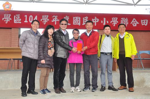 圖文/陳冠霖 一連兩日的金湖學區中小學運動會昨(17)日在金湖國中開賽,金湖鎮長蔡西湖與鎮代會主席呂瑞泰一大早便到湖中田徑場致贈補助金2萬元;蔡西湖表示,希望藉著學區運動會,讓小朋友從小把身體練好,鎮公所補助本次活動,希望讓活動進行順利。金湖國中校長何莉莉、金湖國小代理校長陳為信、開瑄國小校長孫麗琪、多年國小校長陳來添等均到場,感謝鎮長與鎮代會對於學校活動的支持。