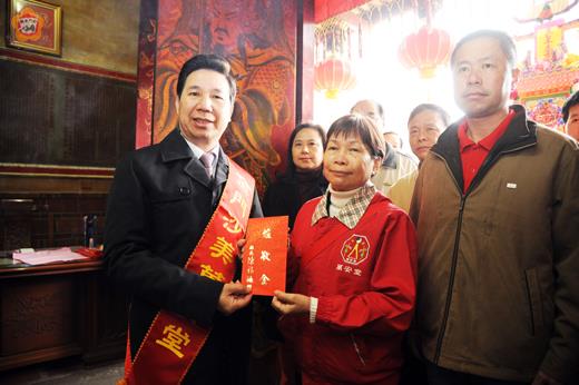 官澳龍鳳宮12日晚間舉辦「第6屆董事、監察人就職典禮」,由縣議員李應文主持,包括副縣長林德恭、立委楊鎮浯、議長洪麗萍、副議長謝東龍、議會祕書長洪允典、前立委楊應雄賢伉儷、金沙鎮長陳其德、民政處長王中聖等人,及第6屆董事、監察人均到場參加。由到場貴賓頒發董事、監察人當選證書、會務人員聘書、顧問聘書等。 官澳龍鳳宮第6屆董事會名冊如下,董事主席楊昂成;董事張世居、楊忠立、楊能斌、黃鴻時、楊增祺、楊恭勤、楊建新、楊恭文、黃華僑、苗招城、楊水生、黃國輝、楊世宏、李昭鵬;常務監察人楊忠福;監察人楊維居、楊肅正、楊延文、楊宏居。顧問包括,浯坑許福氣、陳聰泉、鄭藩志;塘頭楊勤讀、楊誠友;本境許維男、李寧春、李昭紫、張光海、張金石、黃邦雄、楊誠華、楊誠傑、楊根強、楊永福、楊天厚、楊寶傑、楊應雄、楊維生;外鄉楊鎮浯。會務人員包括,總幹事楊義群、幹事楊恭賜、總務組長楊能輝、典禮組長張水溪、財政組長兼會計楊恭敬、出納洪依綸、行政組長張梓祥。 副縣長林德恭致詞時,代表縣長陳福海,對龍鳳宮新任董事與監察人,致上恭賀之意,也對於上一屆董事監察人的付出,致上敬佩之意。林德恭說,龍鳳宮在金門歷史悠久,已經列入古蹟,相信能夠帶給官澳地區甚至整個金門地區鄉親平安,龍鳳宮對大家來說已經是地方信仰中心,對於新任董事與監察人,大家有心有熱情要來管理這間已經算是古蹟的廟宇,令人欽佩。林德恭提到,縣府受到鄉親的支持與照顧,加上過去立委楊應雄在立院為金門奔走打拚,他誠摯地向楊應雄致上最高謝意;另外,今年農曆過年春運工作遇到大霧攪局,林德恭特別感謝新科立委楊鎮浯的幫忙,親自打電話給總統馬英九請求協助,加上金門縣府團隊的努力,總算解決這次艱困的任務,而事後縣府也開會檢討春運工作,相信未來會做得更好。林德恭表示,在中央靠立委、地方靠縣府議會的共同努力下,相信金門未來一定會更好,他說,金門的優勢就是在兩岸,未來如何有效掌握,是共同要面對、努力的方向,未來鄉親府會同心協力,也要仰賴楊鎮浯委員在中央協調,林德恭就提到,最近縣府剛提出共12個方案,要請託楊鎮浯幫忙與中央政府溝通協調。議長洪麗萍致詞時說,龍鳳宮在金門是很有名的宮廟,是鄉親信仰寄託,她祝福鄉親一切平安。 金門俗諺「青嶼祖厝官澳宮」,官澳宮指的是官澳的「龍鳳宮」,龍鳳宮主祀媽祖和廣澤尊王,為官澳與塘頭聚落八甲頭(祖厝甲、鋪頂甲、西甲、中甲、塘頭甲、寮甲、新厝甲、店仔口甲)的信仰中心。