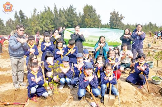 為慶祝童軍節並推展環境教育,金門縣童軍會配合金門縣105年植樹節活動,於十一日在金寧鄉安岐出海口展開植樹活動,縣府教育處長李文良帶領本縣四級童軍代表團隊與童軍發展協會近百人共襄盛舉,縣長陳福海對童子軍參與支持植樹活動表達謝意,期盼透過植樹活動,讓綠意延伸傳承,達成排雷區復育造林並兼具固碳及綠美化效果。 金門縣童軍會配合金門縣105年植樹節活動,十一日上午九時許由縣府教育處處長李文良帶領本縣四級童軍代表團隊,包括有中正國小幼童軍、金城國中童子軍、金門農工行義童軍、金門大學羅浮童軍以及教育處、金門縣童軍發展協會人員參與植樹活動,每人種下一株鄉土適生樹種,包括朴樹、潺槁樹、沙楠子、樹青及水黃皮等,為永續環境盡一份心力。 李文良指出,此次植樹節活動場地,該區域鄰近過去的雷區,因海風長年吹襲,僅有草本植物及木麻黃次生林得以存活,為了提升該區域的林木綠覆率,且提昇綠化質量,將透過本次植樹造林活動,達成海岸復育造林目的,同時亦兼具著固碳綠化及美質增加的效果。 李文良強調,林木不但兼具保持水土及涵養水源與改善生態環境功能,更是防風耐鹽、耐旱耐瘠,保護海岸灘地、避免土石流失。樹木還能吸收日照緩和氣溫、吸濾噪音與污染物、淨化空氣與截阻火災延燒等功效,近年來,地球環境問題普遍受到國際的重視,國際相關組織更主張維護與培育林木資源,避免環境的沙漠化、溫暖化及氣候變遷影響。