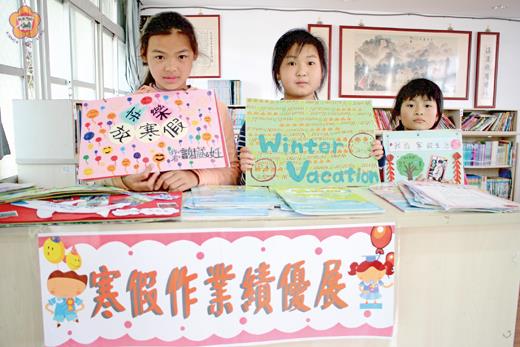 柏村國小近日在校內圖書館舉辦「寒假作品績優展」,由老師評選同學們優秀的寒假作業作品,放在圖書館內供其他小朋友閱覽,並於升旗時公開表揚這些優秀學生。各班導師從績優作品中擇最優3名及進步獎2名,頒發獎狀或獎金以資鼓勵,第一名獎金100元、第二名獎金70元、第三名獎金50元、進步獎獎金50元。 被評選為優秀寒假作業的作品中,其中6年級的寒假作業以畢業旅行為主軸,內容由學生自行發揮,可以貼照片、寫遊記、紀錄畢旅過程及寒假生活,5年級以寒假生活為主,包含生活規劃、活動紀錄、閱讀賞析、日記。有的小朋友以美術方式呈現自己在寒假讀了哪些書以及心得;有的小朋友以繪畫方式介紹植物;甚至有些小朋友列出自己寒假背了哪300個英文單字,十分認真。 柏村國小校長陳為學表示,為貫徹小班教學之適性化、多元化、個別化的精神,啟發學生之多元智慧,增加親子活動,今年寒假作業5、6年級以主題式的作業方式為主,主題式作業格式可用剪貼、仿作、繪圖、照片、圖片、繕寫、拷貝影印、標本等方式完成,作業內容以寒假為主題編輯成冊,包含和家人一起出遊或旅行的紀錄(照相、日記、作文)及心得,閱讀課外讀物的心得或感想。
