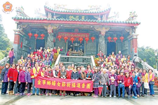 為歡慶婦女佳節,金寧鄉公所昨日舉辦婦女進香祈福活動,三百七十位轄區婦女在金寧鄉長陳成勇的帶領下,前往中蘭金剛寺等知名廟宇上香,大家人手一香,虔誠膜拜祈求庇佑閤家平安,萬事順遂,讓她們在婦女節當天歡度一趟愉快的知性之旅。 鄉公所慶祝婦女節為鄉內婦女們舉辦的進香祈福活動,各村里中年婦女及阿婆均熱絡報名參與,昨日上午八時許,來自各村報名參加活動的進香婦女,滿懷喜悅的結伴同行陸續到鄉公所大門前集合後出發,由金寧鄉長陳成勇領隊,金寧鄉代表會多位代表與鄉公所秘書傅仰鑫都到場關心致意,該行人並分別搭乘九部遊覽車愉快出遊,展開半天的進香旅遊活動。 這項婦女進香祈福活動,在陳成勇的帶領下,婦女們分乘九部遊覽車快樂出遊進香,鄉公所也出動各村幹事及多位臨時人員隨同照護,衛生所也支援護士,讓婦女歡喜平安的抵達中蘭金剛寺、山外復國寺、舊金城城隍廟、金城天后宮等知名廟宇上香,每到一處廟宇,婦女們喜悅之情溢於臉上,大家人手一炷香,虔誠膜拜,祈求庇佑閤家大小平安順遂,一償平日燒香禮佛的宿願。 金寧鄉長陳成勇指出,每年婦女節前,鄉公所都會依據年度計劃辦理進香祈福活動,藉由活動來彰顯婦女為家庭、子女無怨無悔的付出辛勞,並透過正當之戶外活動,參觀沿途的風景名勝,促進老人身心健康。中午時分,鄉公所也宴請三百多位轄區婦女至餐廳用餐,祝賀大家有個愉快的婦女佳節。