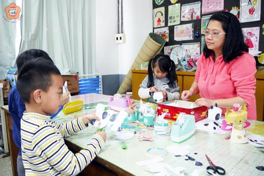 資源回收再利用,紙藝手作好有趣。賢庵國小垵湖分校一年級學生,在主任薛奕龍帶領下,回收紙製品結合藝文深耕元素,一週一次的手作課,學童發揮創意DIY,摺紙、剪貼,上色自行妝點完成造型多樣的動物紙藝玩偶,讓藝文課程好好玩,也從中找到成就感和自信。 垵湖分校一年級學子,在主任薛奕龍帶領下,學童動手學習組織、創作屬於自己的紙藝作品。從需要師長從旁協助,經過多次課程後,學子已能獨立完成作品,內容多樣、色彩豐富,各式可愛的動物如,羊、企鵝、熊貓、兔子、豬、猴子、鴨,在學子創意下,一件件紙藝玩偶更加栩栩如生。 談及帶領學子在課程中結合藝文深耕,融入學習和生活,主任薛奕龍表示,學子循序漸進完成作品,他(她)們利用回收紙類、紙杯套以及碎紙頭和紙製品等,透過各自的創意發想和組織,完成多樣化的作品,並用同學們已能獨力完成的作品,並利用碎紙頭或、回收紙、紙杯套等其他回收紙製品,來當作飾品,打造如披風、頭髮、裙子、書包、帽子等等,妝點玩偶也讓造型更加豐富多變。這堂課相當受到學子的歡迎。而同學們也紛紛表示,這課程相當好玩! 不只創作屬於自己的紙藝玩偶,從中找到自信和成就感,現場一年級學生顏章嘉說,自己創作的熊貓是男生,所以要為他做一把劍。也有同學則是為自己的熊貓以藍色的蝴蝶結裝飾。而薛菲君把自己的手作熊貓當成好朋友,希望能辦場化妝舞會,邀大家的熊貓一起參加。