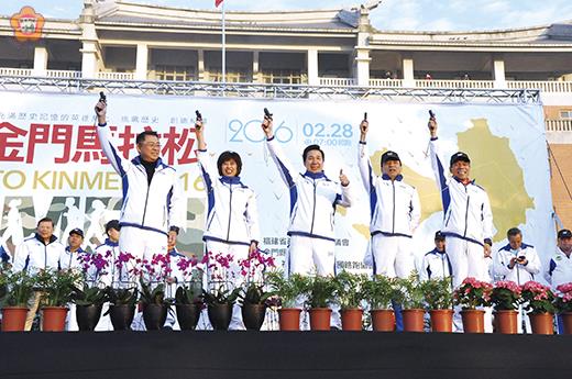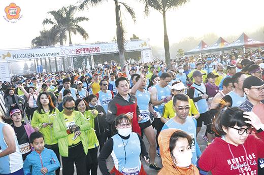 2016金門馬拉松賽開幕典禮昨日盛大在國立金門大學校園舉行,縣長陳福海主持,並與縣議會議長洪麗萍、立委楊鎮浯等人鳴槍開跑;陳縣長致詞說,金門是一個路跑的天堂,也是一個有歷史、文化島嶼,並具有「堅持到底,永不放棄」的金門精神;他祝路跑選手在充滿歷史記憶的英雄島,跑出健康、希望,以及挑戰自我創造紀錄,更與選手相約第十屆在金門再相見! 擁有戰地軍事文化特色的國際大型路跑賽事及「初馬天堂」美譽的金門馬拉松賽,開幕典禮於昨日上午六時三十分舉行,有來自兩岸四地和各國地區五千位路跑選手參賽外,金門縣政府再度邀請肯亞兵團四位優秀選手參與賽會,成了全場焦點。 陳縣長在開幕典禮致詞,他首先歡迎兩岸四地和國際各地熱愛路跑者來金門參加一年一度馬拉松盛會,並向大家問候「早上好!」以及問到「天氣好不好!」他說台灣在下雨,金門天氣好,是一個路跑的天堂,也感謝老天給我們一個花開溫暖好路跑的天氣,並祝參賽者超越自我,創造佳績。 陳縣長向馬拉松路跑者介紹表示,金門是一個幸福城市、治安良好,並以幽默口吻提醒說「今天的警察會捉超速,你們時速不能超過六十,我們警察會捉超速!」頓時讓緊張的馬拉松賽氣氛,在現場一片開心笑聲中緩和下來,愉快起來! 金門是一個歷史悠久文化島,有著「海濱鄒魯」之美譽,也是一個充滿歷史記憶的英雄島,陳縣長說,金門早期是戰地,有著馬拉松的「堅持到底,永不放棄」的金門精神。同時,他再次期勉與會路跑者「超越巔峰」,並在友善的環境感受到金門是一個熱情的島嶼! 在接受媒體記者訪問時,陳縣長說,所有參加馬拉松路跑者「因為有你們,金門真好!」今年是第九屆,相信未來一屆會比一屆好;由於金門是戰地,所以在賽道安排許多戰地風光,並有閩南傳統建築文化、生態文化景觀,期透過馬拉松比賽盛事,除了讓參與路跑者在良好賽道上爭取最好成績,並讓與賽者體驗金門戰地之美! 另,陳縣長說,今年有振興醫院「換心人」開心的參加金門馬拉松賽事,並跑完賽程;他說,活在當下,跑出健康和希望,也是此次舉辦馬拉松的特別意義!此次,振興醫院換心人是張龍雄、簡鑠驊、林莉萍和楊忠魚參與,體現健康是普世價值,而馬拉松是堅持到底永不放棄的自我挑戰! 縣議會議長洪麗萍致詞時,她以最敬愛的來稱呼陳縣長,並說陳縣長是幸福最大的來源、「福海,我們就福如東海」,所以有好天氣,可以舉辦馬拉松路跑活動。同時,她也向參與貴賓、選手、鄉親拜個晚年,祝福大家跑出好成績,並有更好的健康、美好的未來,平安健康! 福建省政府秘書長李智雄也是馬拉松參賽選手之一,他致詞代表省主席林祖嘉向大家問好!其次,他報名參加全馬,李智雄說他的心情非常雀躍,並跟大家報告說,祝大家超越巔峰,跑出好成績,最後高喊「大家加油!」
