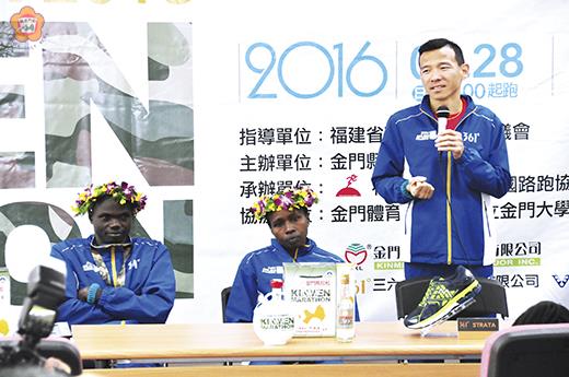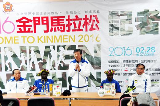 2016金門馬拉松賽記者會於昨日上午十一時舉行,介紹奪下全馬男、女子組冠軍寶座的肯亞路跑好手諾理斯·比瓦特與愛蜜莉·沙墨依,以及國內第一名(全馬男子組第三名)的選手蘇志濱之外,針對金門馬拉松參賽名額,金門縣副縣長林德恭表示明年將做一個適切檢討,配合金門當地發展,持續提供一些設施,滿足所有熱愛馬拉松路跑朋友的期待,讓金門成為一個休閒運動島! 林德恭在記者會首先表示,金門馬拉松連續舉辦九年,主辦單位很用心,並在中華路跑協會協助之下,一年比一年來得盛大、一年比一年辦得更為理想。同時,他說誠如縣長陳福海說的金門天氣春陽普照和暖,更為馬拉松增添光彩。同時,他也代表陳縣長感謝媒體採訪和報導,也將金門行銷出去! 林德恭提到振興醫院心臟外科團隊陪著三位換心朋友來到金門參與馬拉松盛事,讓今年馬拉松不僅是挑戰自我的極限,更是為健康而跑,它的意義更為深遠! 今年的金門馬拉松路跑只有五千個名額,全馬有二千五百個名額、半馬一千八百個名額,十一點二公里有七百個名額,在短短的十八分鐘「秒殺」,對金門馬拉松鼓舞很大,林德恭表示,有很多向隅者 ,不能符合他們的期待,難免有遺珠之憾。 林德恭指出,馬拉松賽路跑路線都需要經過嚴格檢驗,陳縣長也相當重視,並在比賽前一天,他親自做了實勘,並提出一些看法,期待主管單位持續來做一些改善,提供更好的賽事場地。 另,金門馬拉松賽是台灣極少數通過國際田徑總會、國際馬拉松暨路跑協會認證的賽道及成績。而且,金門馬拉松活動由IAAF/AIMS指派的A級丈量員及授權的計時晶片系統;因此完賽選手提出金門馬拉松有IAAF/AIMS標誌的成績證明,可申請需限時成績的國際各城市馬拉松賽會。 未來針對金門馬拉松報名名額,林德恭指出,將與縣府教育處來檢討和加強改善,讓喜愛路跑者來共襄盛舉,也是我們的力量持續來加大,讓明年金門馬拉松辦得更十全十美,也是我們追求的一個目標。 林德恭提到陳縣長說金門是一個充滿歷史、文化的島嶼,並有特殊的戰地史蹟和僑鄉文化,自然生態更是受到稱許;同時,他指出,金門被評為最適合人居的城市,未來將結合運動擴大成為一個運動休閒島。 林德恭也希望媒體朋友在馬拉松賽事告一段落後,至金門各地走走,並提出一些指教和建議,讓金門在縣政工作上能夠持續往前推動,提供一個更好的環境。 中華路跑協會秘書長陳華恆表示,馬拉松賽有著相對條件,包括溫度濕度,對路跑選手來說都是一個挑戰。同時,他提到與陳縣長路勘時提到幾個景點要介紹,太武山路線坡度長約二百多公尺,上下坡度對選手是一個很大挑戰,選手能夠跑出亮麗成績,也不容易!