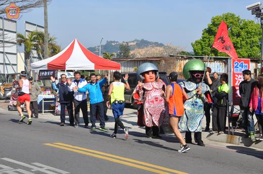 《金門馬拉松》蔡西湖與電音三太子為跑者加油打氣
