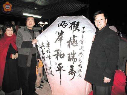 歡喜慶元宵!大陸廈門民間戲校高甲戲團昨日跨海抵金在金湖料羅順濟宮首演,演出一齣拿手好戲「三嫁公主」傳統閩南戲曲,為本縣及金湖鎮公所昨天在料羅順濟宮前廣場舉辦的一系列溫馨慶元宵活動增添無比的光彩,金門縣長李炷烽偕同夫人吳麗鳳與上百位鄉親逗陣欣賞精湛演出,回味從前,同時一起施放天燈,祈祝兩岸永遠遠離戰爭,追求永久和平。 金湖鎮公所今年元宵節特別在料羅順濟宮前舉辦系列溫馨慶元宵活動,包括有「贈送燈籠喜迎元宵」、「祥獅獻瑞慶團圓」、「搓湯圓廣結善緣」及「施放天燈祈福」、等系列傳統民俗、戲劇活動,鎮長李成義準備二百個燈籠現場分送給國小小朋友,同時,還安排有柏村國小舞獅隊演出、搓湯圓、吃湯圓慶團圓應景活動,氣氛強強滾。 最難得是,今年大陸廈門民間戲校高甲戲團應金門縣社教文化活動基金會的邀請前抵金門展開五天的公演活動,昨晚七時卅分即在料羅順濟宮前廣場首演,以一齣「三嫁公主」傳統閩南戲曲和金門鄉親歡度元宵佳節,也讓金湖元宵節更增添傳統色彩及熱鬧氛氛,吸引眾多戲迷熱情捧場,現場座無虛席,到處人擠人,盛況空前。 金門縣長李炷烽偕同夫人吳麗鳳到場與鄉親一起欣賞廈門民間戲校高甲戲團演出,對他們精采演出,頻頻報予熱烈掌聲喝采;團長吳志躍除了問候金門鄉親父老節日好外,也對這次到金門與金門鄉親一起過元宵感到十分有意義,尤其老天爺作美,上午下雨、中午出太陽,晚上慶節「有聲有色」,雖然天冷,大家內心卻是暖和和的。 「元宵夜未央.天燈共祈福」活動中,縣長李炷烽在主燈題寫「猴桃瑞壽.兩岸和平」,李縣長祈祝兩岸永遠免除戰爭威脅,一起追求永久和平,他同時也希望金門在猴年充滿「猴」力,大家共攜手營造蓬勃發展的新金門。廈門民間戲校高甲戲團團長吳志躍也熱情響應同賀,博得現場鄉親熱情掌聲。 李縣長及夫人、團長吳志躍、金湖鎮長李成義並和各機關首長、鄉親一起施放天燈祈福,二百多位鄉親在寒冬中熱情參與,鄉親們分別在天燈書寫闔家平安、金榜題名、事事如意、多子多孫、財源滾滾、天賜良緣及大發利市等字祈福,二百多組天燈也頂著夜色冉冉升空,鄉親們在天燈施放後,看到夜空被朵朵天燈所包圍,不時發出歡呼聲,並盡情欣賞夜空中滿懷祝福的天燈景致,心中也充滿幸福與感動。 昨晚的燈會活動是金湖鎮公所首度將天燈與農曆初十五元宵節傳統民俗結合在一起,加上廈門民間戲校高甲戲團抵金湖料羅順濟宮廣場首演,演出精采,也為年節熱鬧氣氛帶至最高潮,高甲戲又稱「九甲」、「交甲」,源自閩南泉州,金門舊屬泉州管轄,傳入後地方上俗稱「大戲」、「正戲」,宗祠奠安或重大民俗慶典必演戲曲。 除了首場戲碼為「三嫁公主」,廈門民間戲校高甲戲團另也準備了「楊門巧媳」、「三嫁公主」、「三請樊梨花」等拿手好戲,將在今(六)日晚上七時金門縣立文化中心,七日下午二時烈嶼鄉體育館、晚上七時三十分金寧中小學,八日晚上七時三十分沙美大菜宅等地演出,歡迎喜愛高甲戲金門戲迷別錯過難得機會。