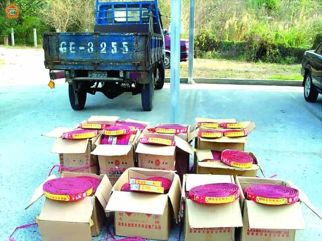 年關將屆,金門岸巡總隊、金門查緝隊昨天再度聯手出擊在馬山灣岸際查獲一起走私大陸鞭炮案件,當場攔截逮捕一名蘇姓民眾以藍色貨車從馬山岸際搬載這批私貨上岸,起出一百六十八串共計近四百公斤重的湖南醴陵出產煙花鞭炮,全案依違反海關緝私條例函送海關處理。 因應春節需要,市面上炮竹開始熱賣,金沙鎮蘇姓民眾眼見鞭炮巿場行情不錯,以新台幣一萬六千元向大陸不知名人士購進大批鞭炮,並於昨天下午二時以貨車前往欲取貨,結果被執行「鎮海專案」岸巡總隊五龍山、劉澳巡邏站及查緝隊副隊長蔡金義率弟兄發現有異中途攔截。 涉案蘇姓民眾供稱,由於年節將近,市場鞭炮需求量大,有利可圖,他才冒險向大陸訂貨,雙方談好價格後依潮汐約定時間「丟包」及「取貨」,這些鞭炮就是要準備拿到巿場販售,估計可賣三萬多元,從中可獲利一倍,但沒想到被查緝隊員中途發現查獲,連本錢也泡湯,悔不當初。 經查緝隊員清點,這批為數不少大陸鞭炮,包括有大號廿一串、中號九十九串及小號四十八串,合計一百六十八串,總重量達三百九十四公斤重,全是湖南省醴陵出產,醴陵是湖南省的煙花鞭炮主產地之一。查緝隊員依法進行查扣,同時將全案依違反海關緝私條例函送海關處理。 據了解,有些人喜愛在年節期間燃放鞭炮賀新年的氣氛,不過,曾傳出台中縣一名機車騎士被鞭炮嚇到而撞倒一名路旁婦人致死,婦人的丈夫及子女向機車騎士及放鞭炮者提起民事訴訟,法院判決二名肇事者須共同賠償精神撫慰金新台幣二百四十萬元。代價相當高,殊值民眾在施放鞭炮前三思。 海岸巡防署有鑑於年關將屆,走私、偷渡情事有增加趨勢,從元月五日起展開為期一個月的「鎮海專案」,金門岸巡總隊、金門查緝隊在隊長坐鎮指揮下,已全面針對各海岸岸際執行查緝掃蕩行動,不再讓私梟有可乘之機,希望能讓金門大眾過個快樂平安年。