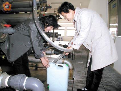 你品嚐過「海洋生成水」嗎?金門自來水廠昨起展開為期一個月免費供水試飲,吸引不少民眾攜帶大小水桶前至太湖淨海水場旁的海水淡化廠提水回家飲用;水廠另貼心為各機關學校準備盛水塑膠容器盛裝,未來不排除以「包裝杯水」進軍國內飲料巿場,全力「促銷」金門道地的海洋生成水。 位於太湖淨水場旁的海水淡化廠,係於民國九十年九月十二日起開始試車產水,至目前為止雖尚未達到驗收條件之合格試車天數,但自去(九十二)年六月十六日起恢復第二階段試車以來,運轉順利,已可達到每日2000噸之全負荷產量,且產水水質符合標準。 自來水廠二週前曾特別舉辦一項海洋生成水試飲活動,一般民眾生飲後,反應口感良好,經生飲問卷調查,有大部份人感到「海洋生成水」之口感明顯優於其他市售包裝水,尤其,具有甘味十分適合生飲及品茗泡茶,泡茶亦不失茶香。 水廠廠長翁自保為擴大飲用層面,決定自昨試行免費供應一個月,將持續至二月十日止,地區機關、學校、團體及家戶於上班時間自行前往淡化廠盛裝即時生成水,一次以不超過60公升為主,並提回試飲,昨首日一早即有民眾攜帶水桶前至排隊提水,情況熱絡。 水廠也貼心準備20公升貼有「海洋生成水」標示之塑膠容器,以供機關學校申請洽借,原則一次以5桶(100公升)為限,人數較多之機關學校可另行申請增量供應,飲完後應保留乾淨空桶,於下次提取時攜來盛裝或歸還。舉辦大型活動時,可出示函簽或計畫,依活動參與人數適當申請,容器可由該廠提供,惟應保留空桶歸還。水廠提醒,提回之海洋生成水,請自行標示盛裝日期,且應儲放於乾淨的環境,生飲時須注意其新鮮度,一般若不開啟容器蓋之情況下,儲放二週之內仍可生飲,若放置太久,或容器蓋啟開頻繁,須經煮沸後飲用為宜。 水廠也希望民眾「呷好水,逗相報」,水廠表示,若民眾不排斥生飲,且持續反應良好,則該廠不排除再以「包裝杯水」之方式推出,可望打開巿場銷路,在國內飲料巿場佔有一席之地。