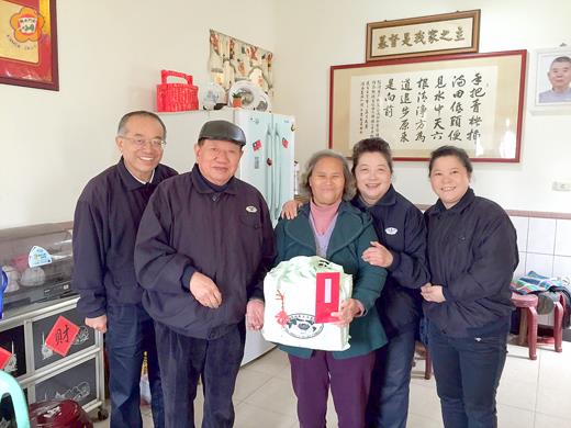 冬寒送暖,台北市金門同鄉會關懷旅居台北市低收入鄉親,特於春節前夕派員前往慰問,讓貧苦的鄉親深感窩心、溫馨。 台北市金門同鄉會理事黃清祥、戴河生,監事黃燕及志工李文福等受理事長李台山之委託慰問低收入鄉親。 該一行人於3日下午風塵僕僕冒著刺骨冷風前往居住台北市並列為扶助對象的兩戶急難戶,除贈送慰問金外,也親切寒暄話家常,祝賀新年快樂、幸福。 另外一位長期住在台北市立聯合醫院松德醫院療養的鄉親去(104)年病情好轉出院,無法送達金門同鄉會關懷與賀節之意,理事黃清祥、戴河生,監事黃燕及志工李文福等一行同聲表示遺憾。 記者翁維智/綜合報導 新北市金門同鄉會日前展開歲末年終關懷慰問鄉親之活動,陳復寶理事長帶領常務理事張峯國、監事陳其福、副總幹事黃清祥、顧問鄭員、志工許美珠、秘書張國森等前往新莊仁濟醫院、樂生療養院慰問長期住院療養金門籍鄉親。陳復寶指出,新莊仁濟醫院是一家長期耕耘身心健康醫療領域,整合心理衛生、職能治療與社會福利的醫療院所,設有日間病房、居家治療與社區復健中心,協助有身心醫療需求之民眾與家屬,提供完整的醫療照護與復健服務。當天,這項關懷慰問活動由該院社工室主任張文懿陪同療養鄉親到會議室與同鄉會人員見面,同鄉會對鄉親之近況及療養情形表示關心頻加垂詢,並贈送每人一份春節禮金與家鄉風味特產,另外也致贈毛帽、圍巾、手套等保暖用品,讓療養院鄉親十分感心。 隨後,同鄉會一行也趕往樂生療養院慰問,衛生福利部樂生療養院是一所為照顧漢生病患專業院所,院方有專業醫護人員並協助院民生活照護。 值得一提的,新北市金門同鄉會顧問鄭員長年自掏腰包自金門購來土產點心,分享給鄉親品嚐。志工許美珠也共襄盛舉自費購置保暖用品分贈鄉親,讓旅外鄉親感受到來自家鄉濃濃的溫暖鄉情。